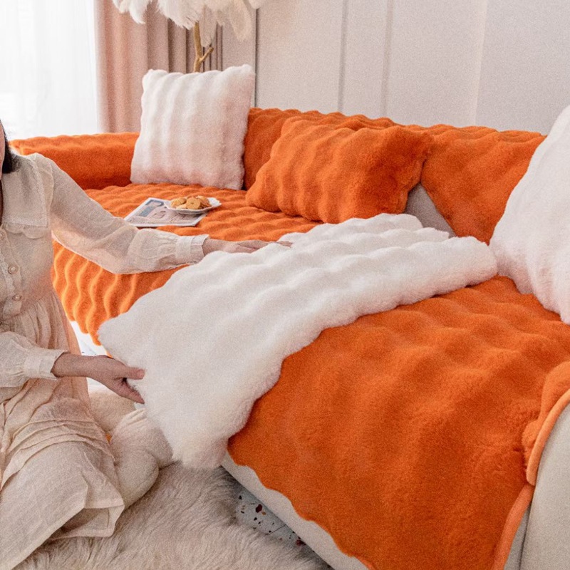 Кролик Плюшевый Кремовый Стиль Подушка Для Дивана Утолщенная Плюшевая Подушка 2023 Новый Стиль Кожаный Нескользящий Чехол Для Дивана Ткань Полотенце