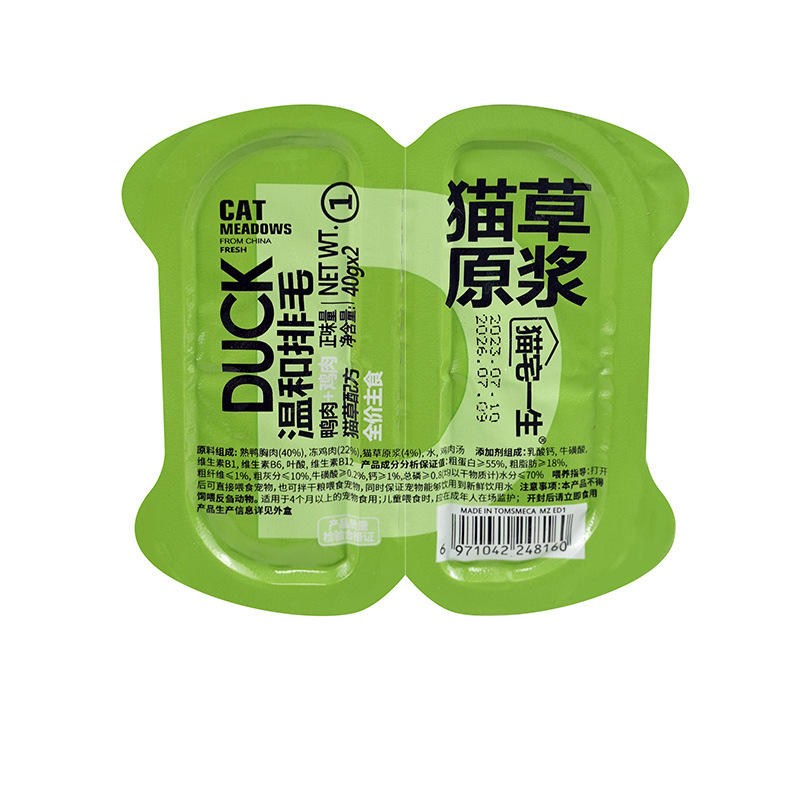 Корм для кошек Cat House Life Double Ear Cup с кошачьей травой и пюре, средство от золотистых уплотнений, 40г*2, питательный, натуральный, консервированный