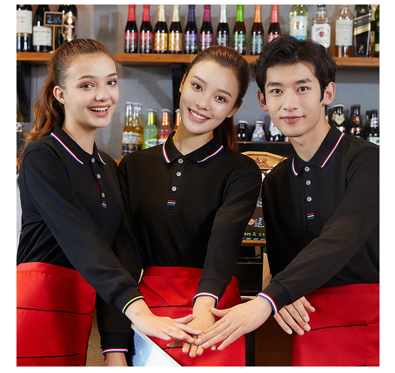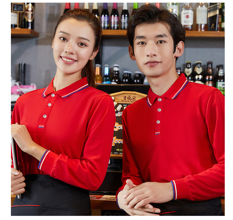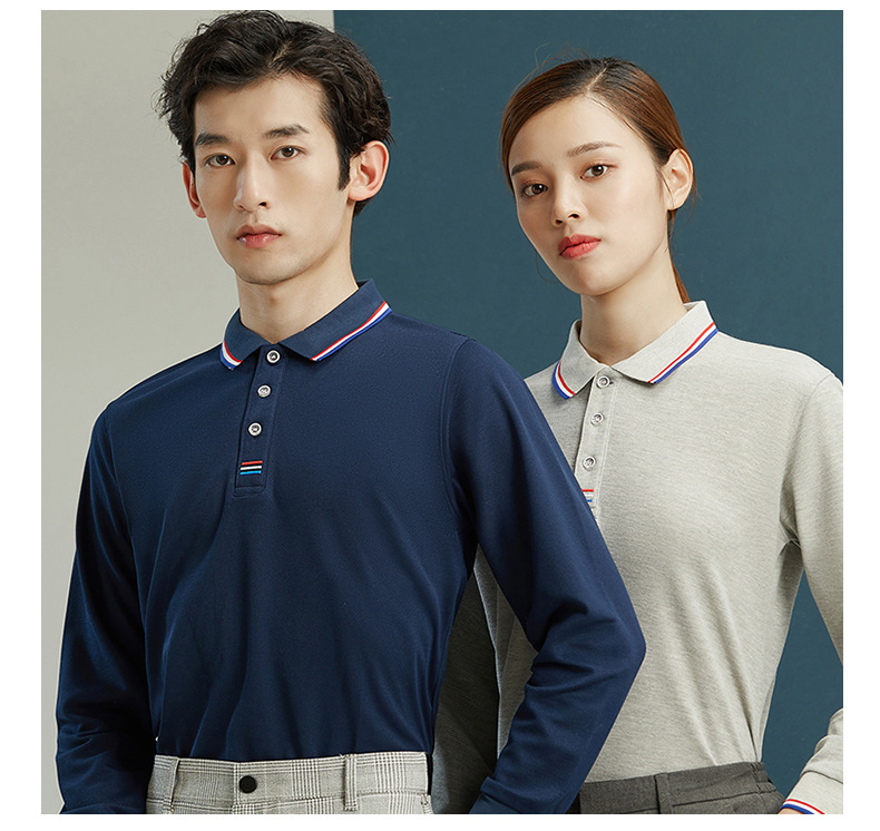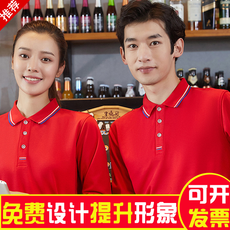 Осенне-зимняя новая окрашенная пряжей рубашка-поло с лацканами с длинными рукавами рабочая одежда для гостиниц деловая реклама футболка с вышивкой с принтом