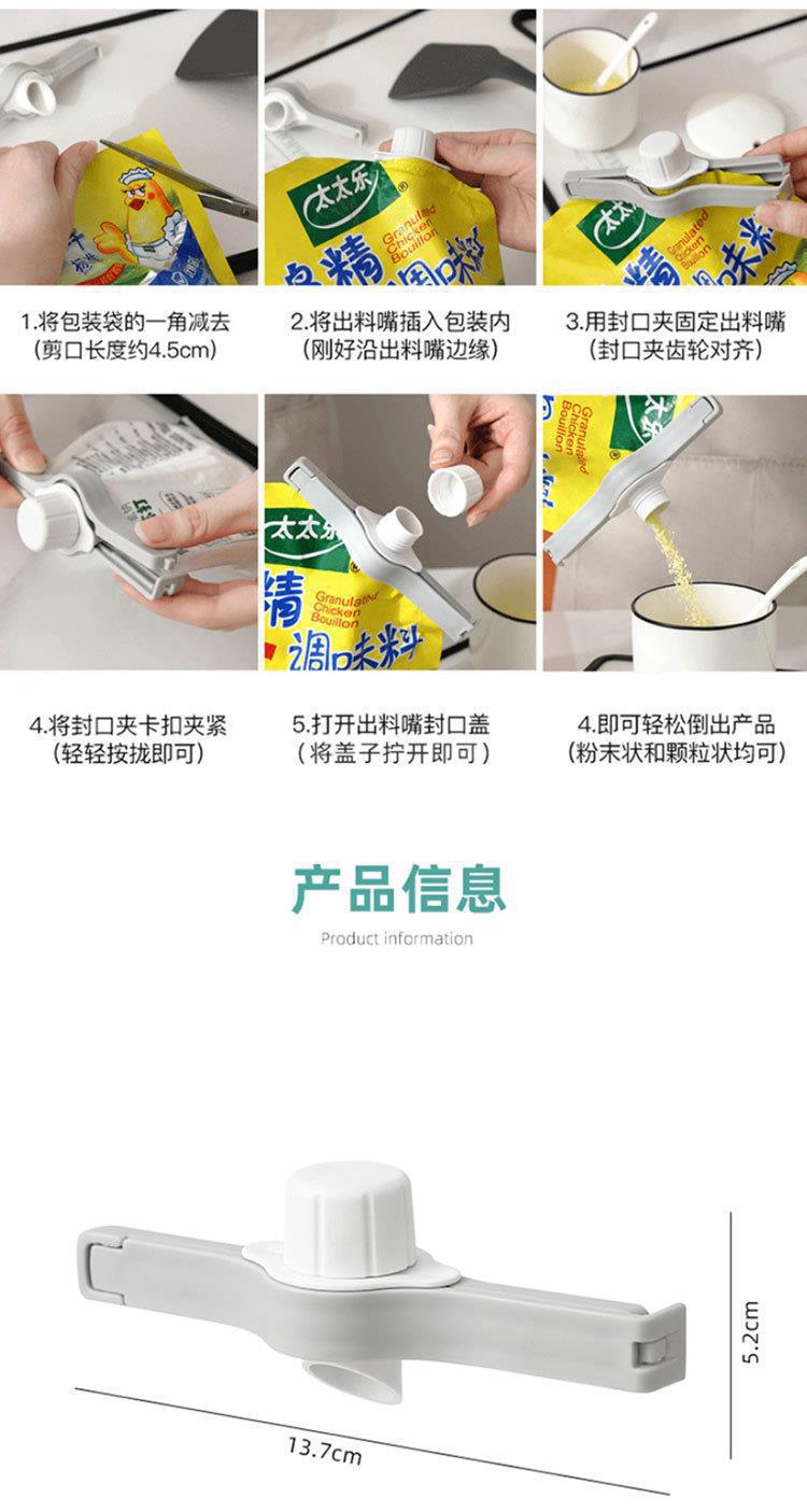 Герметичная сливная насадка, уплотнительный зажим, кухонная приправа, сохранение пищевых продуктов, влагостойкий зажим, пластиковый пакет для закусок, зажим для сухого молока