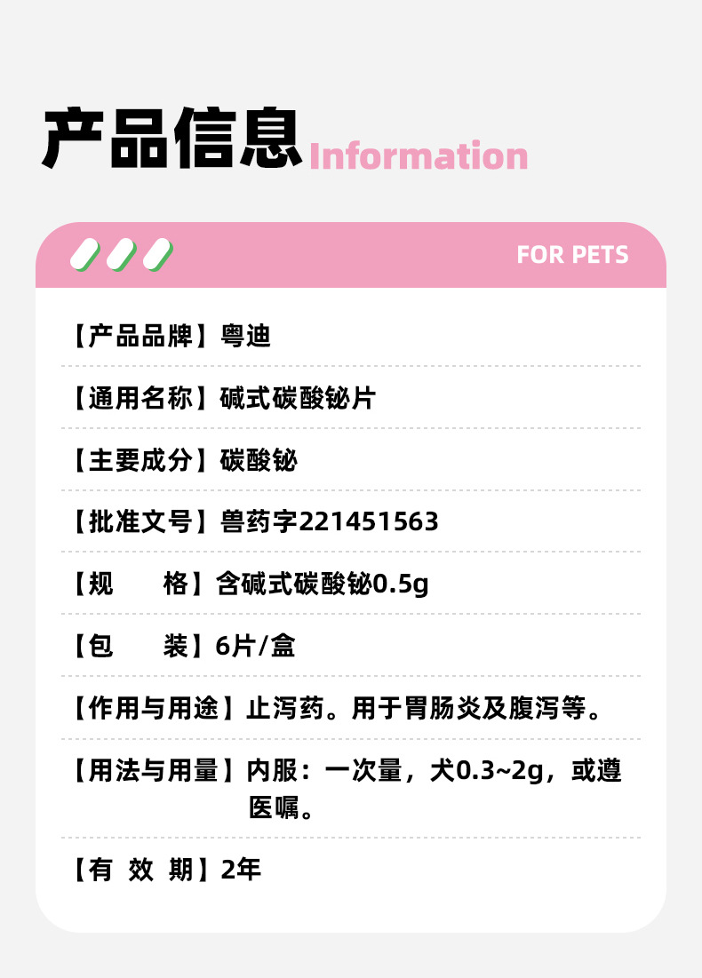 Yuedila диарея для домашних животных, противодиарейное средство для собак, диарея, средство для лечения диареи, воспаление желудочно-кишечного тракта, субкарбонат бисмута для собак, таблетки против диареи