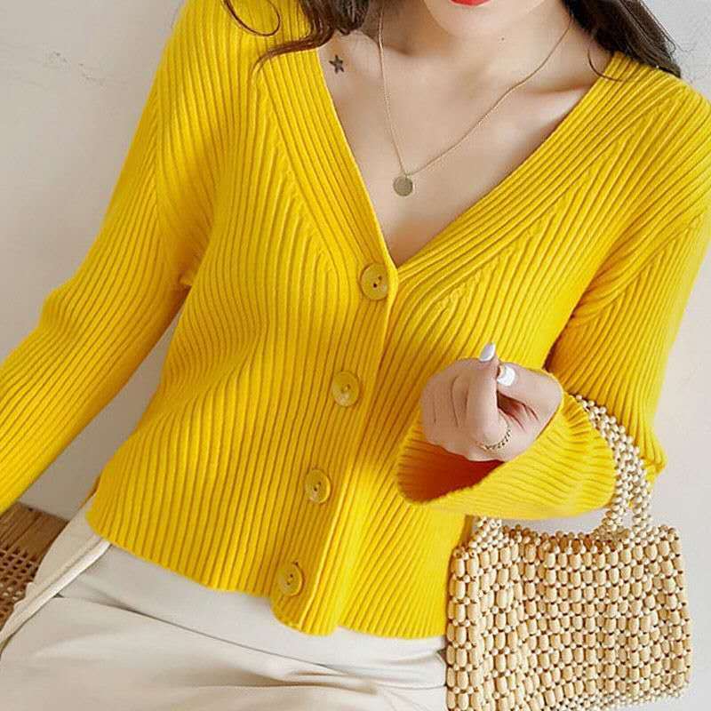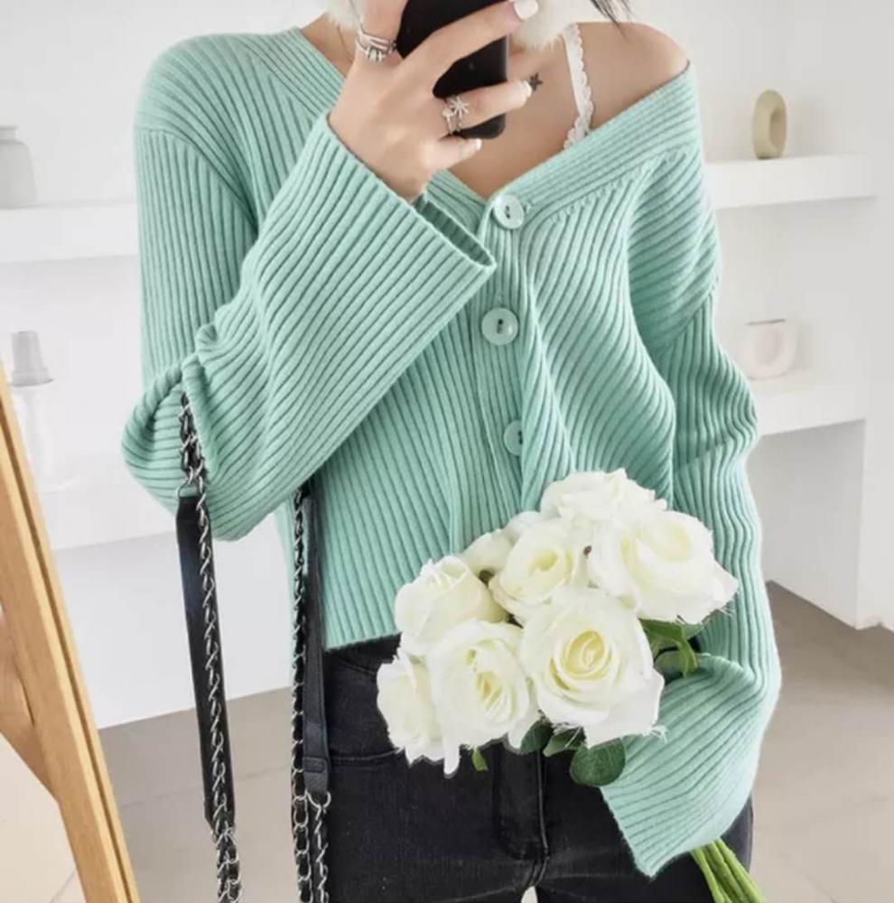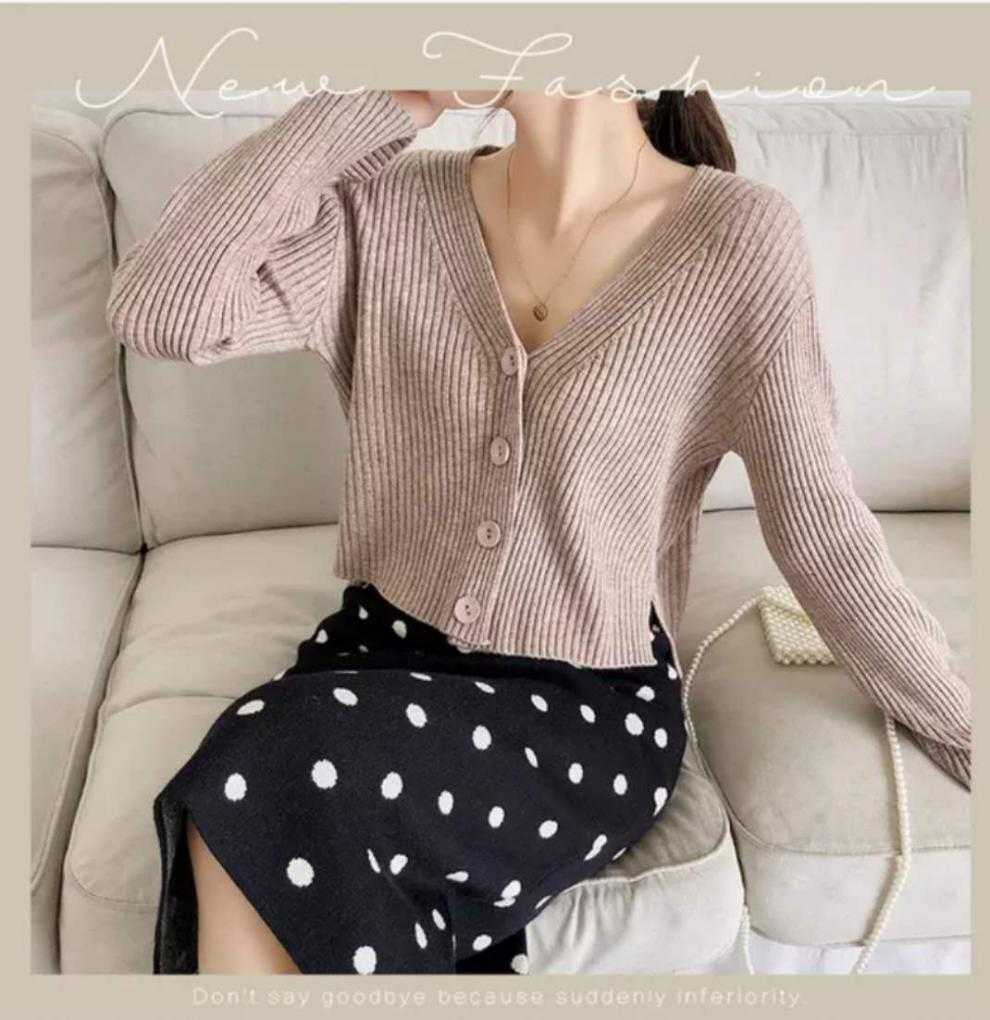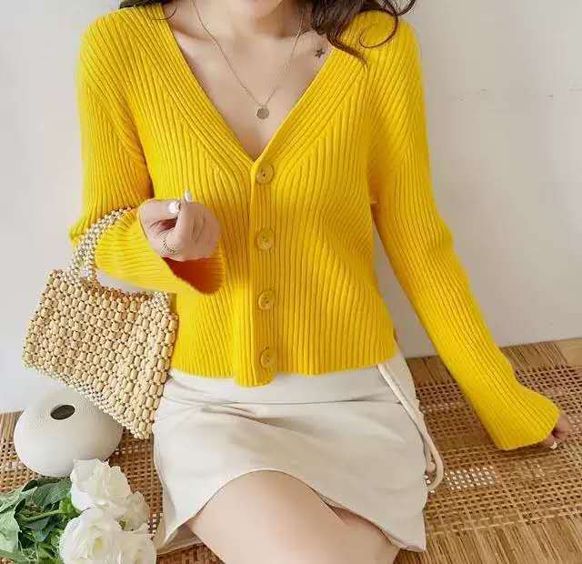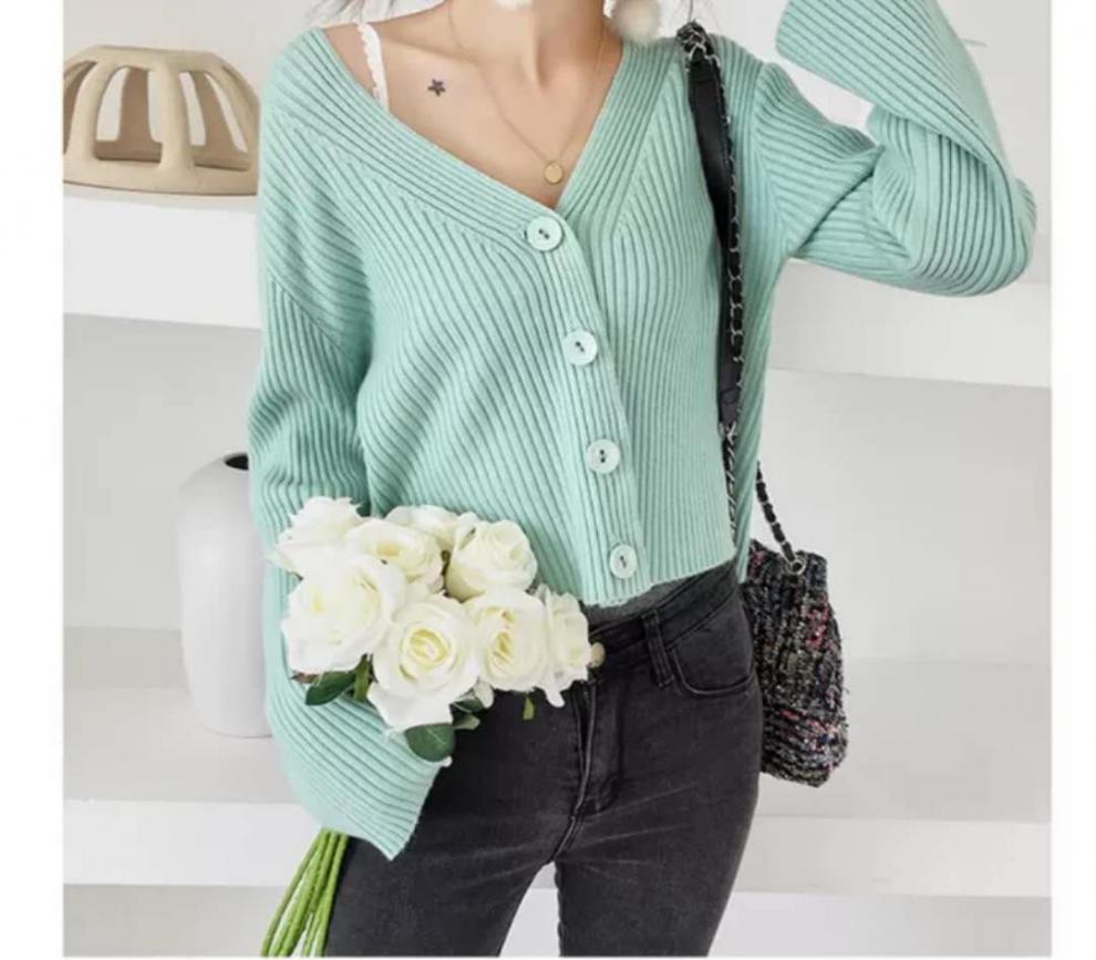 Женский свитер-кардиган в корейском стиле, осень 2025, новая мода, короткий, с длинными рукавами, однотонный, ленивый трикотаж