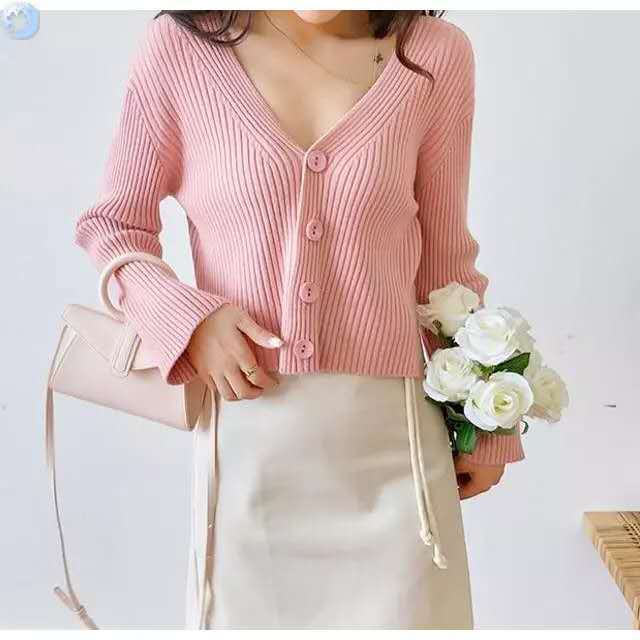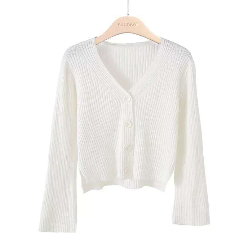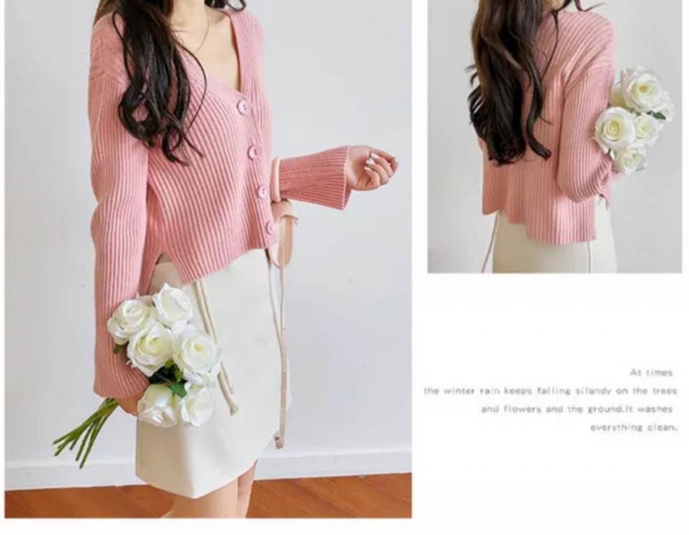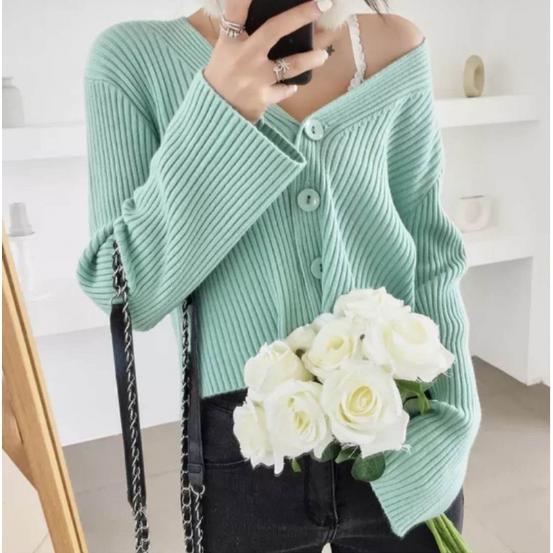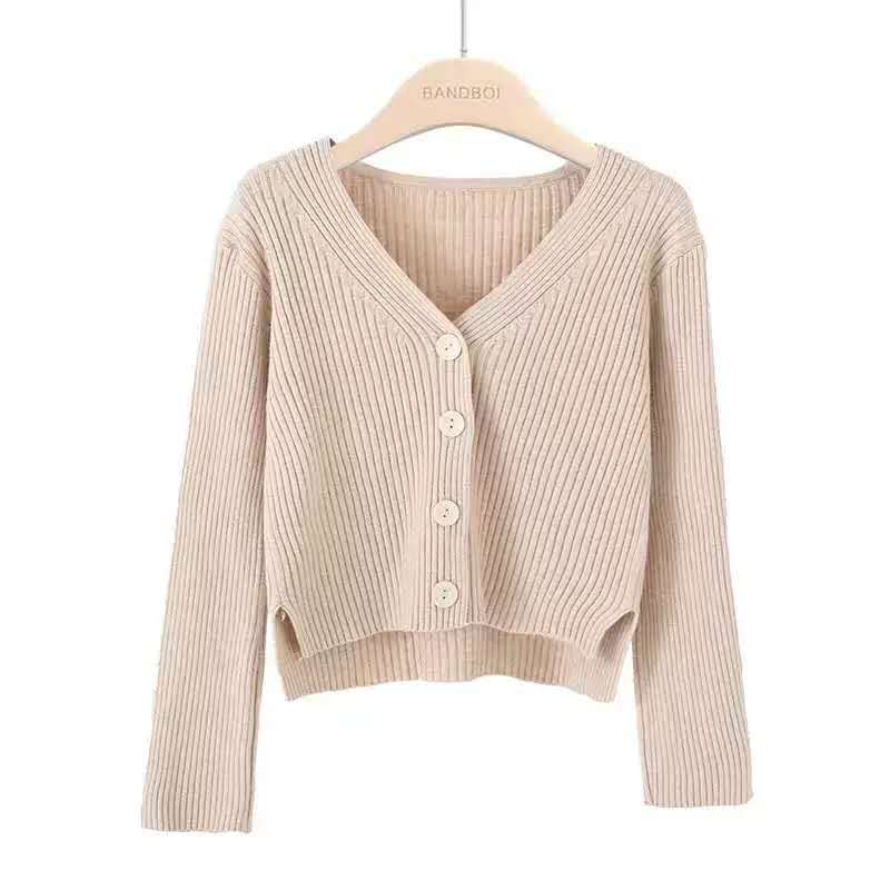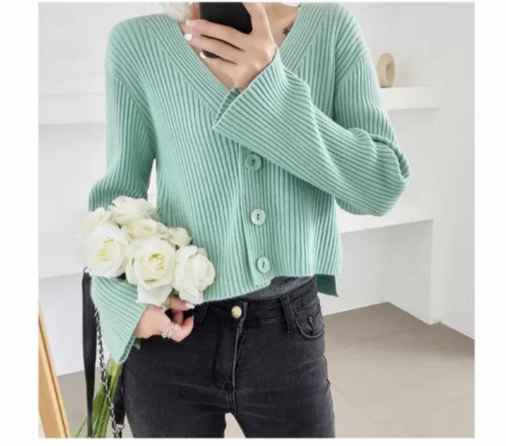 Женский свитер-кардиган в корейском стиле, осень 2025, новая мода, короткий, с длинными рукавами, однотонный, ленивый трикотаж