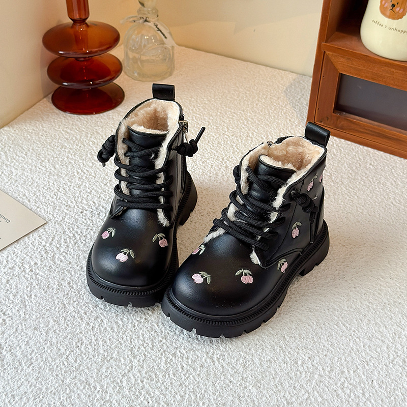 Детские флисовые ботинки Мартин 2025: новая осенне-зимняя коллекция, вышитые сапожки принцессы для маленьких девочек, короткие сапожки для малышек