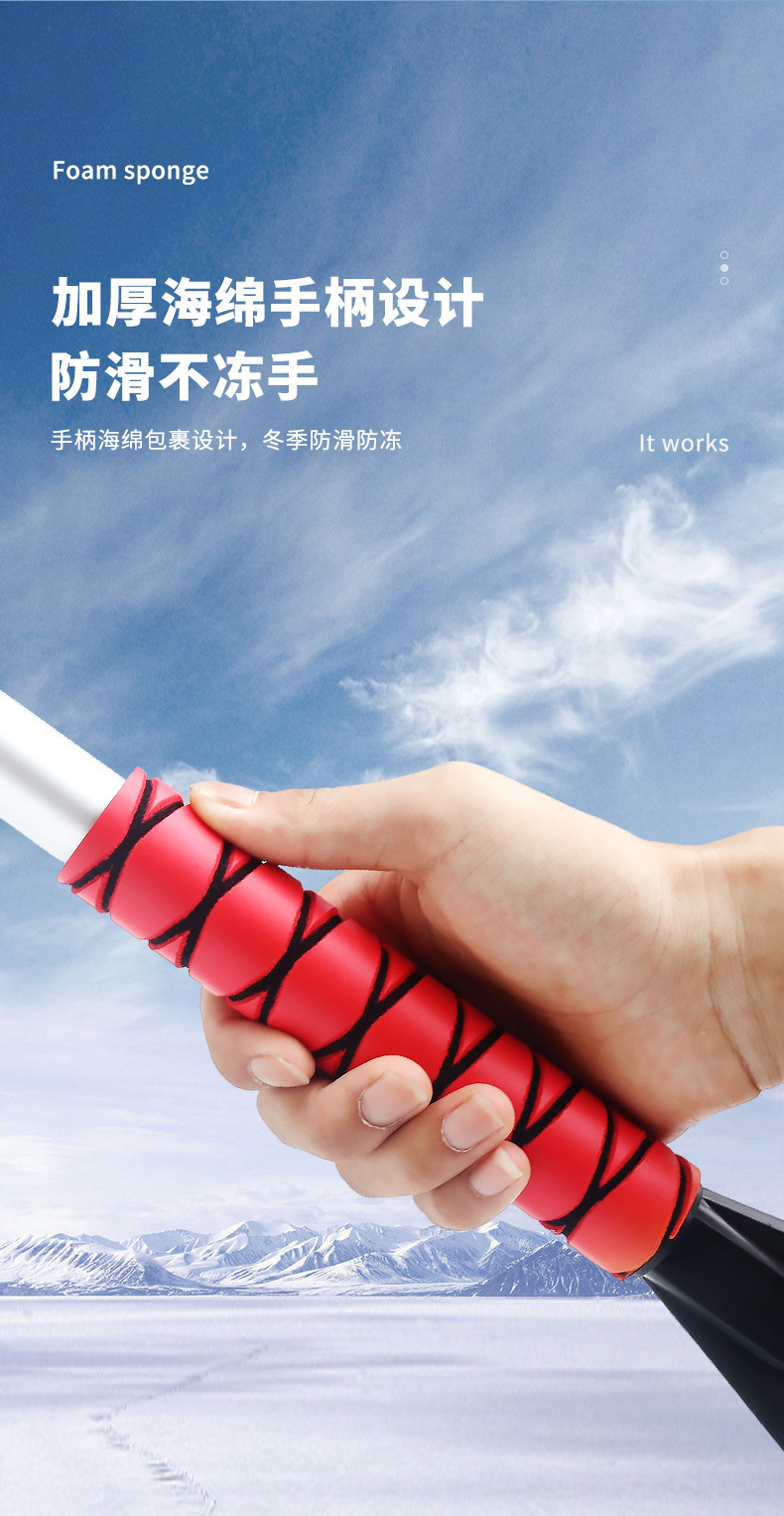 ●除了可以去除汽车上的雪和霜之外,还可以扫刷电动车,自行车以及被大雪被大雪覆盖的房子,玻璃门窗等。