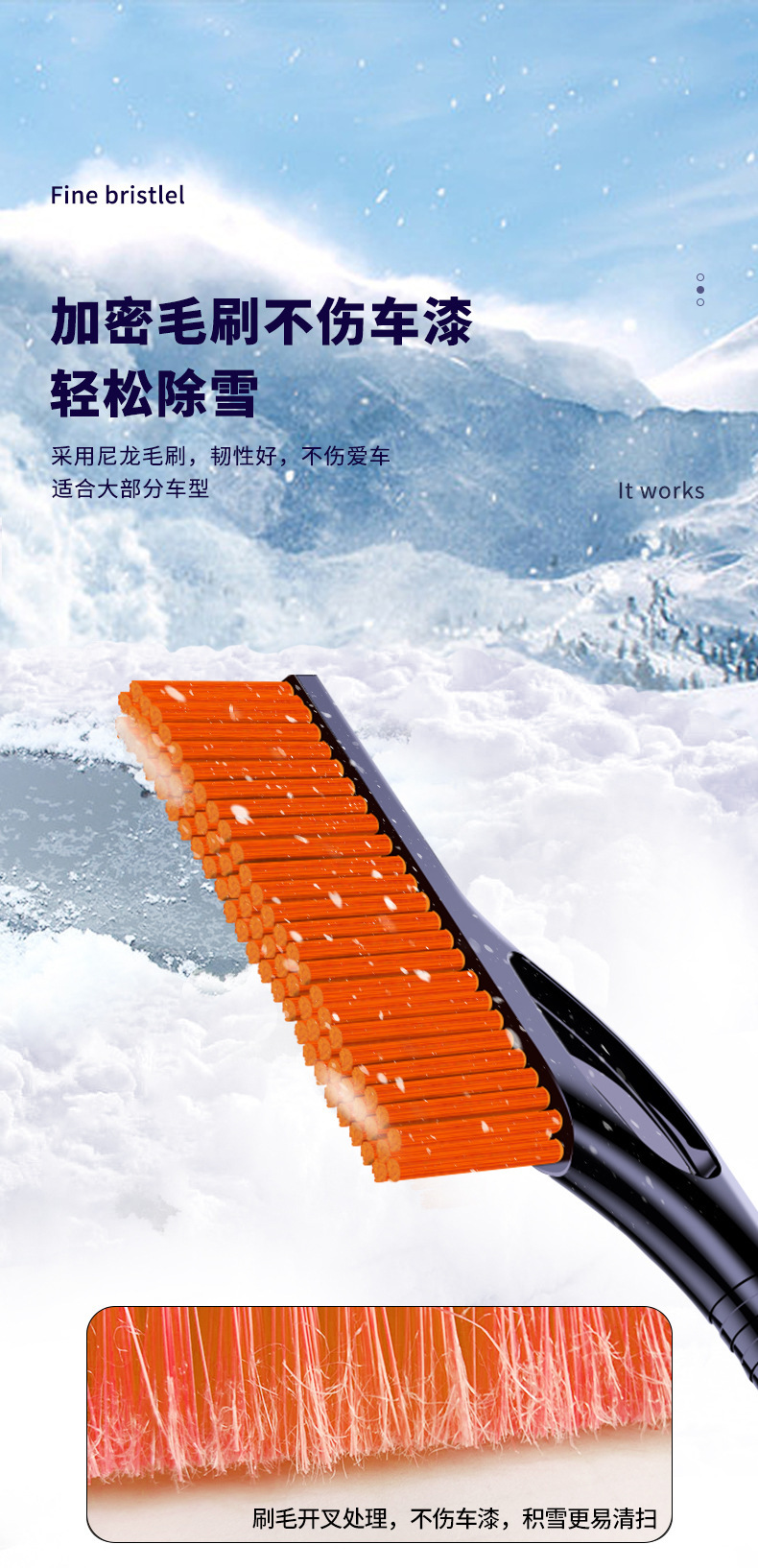 【产品特点】:●除雪刷头:ABS高强度塑料,PVC刷丝耐低温不易折断