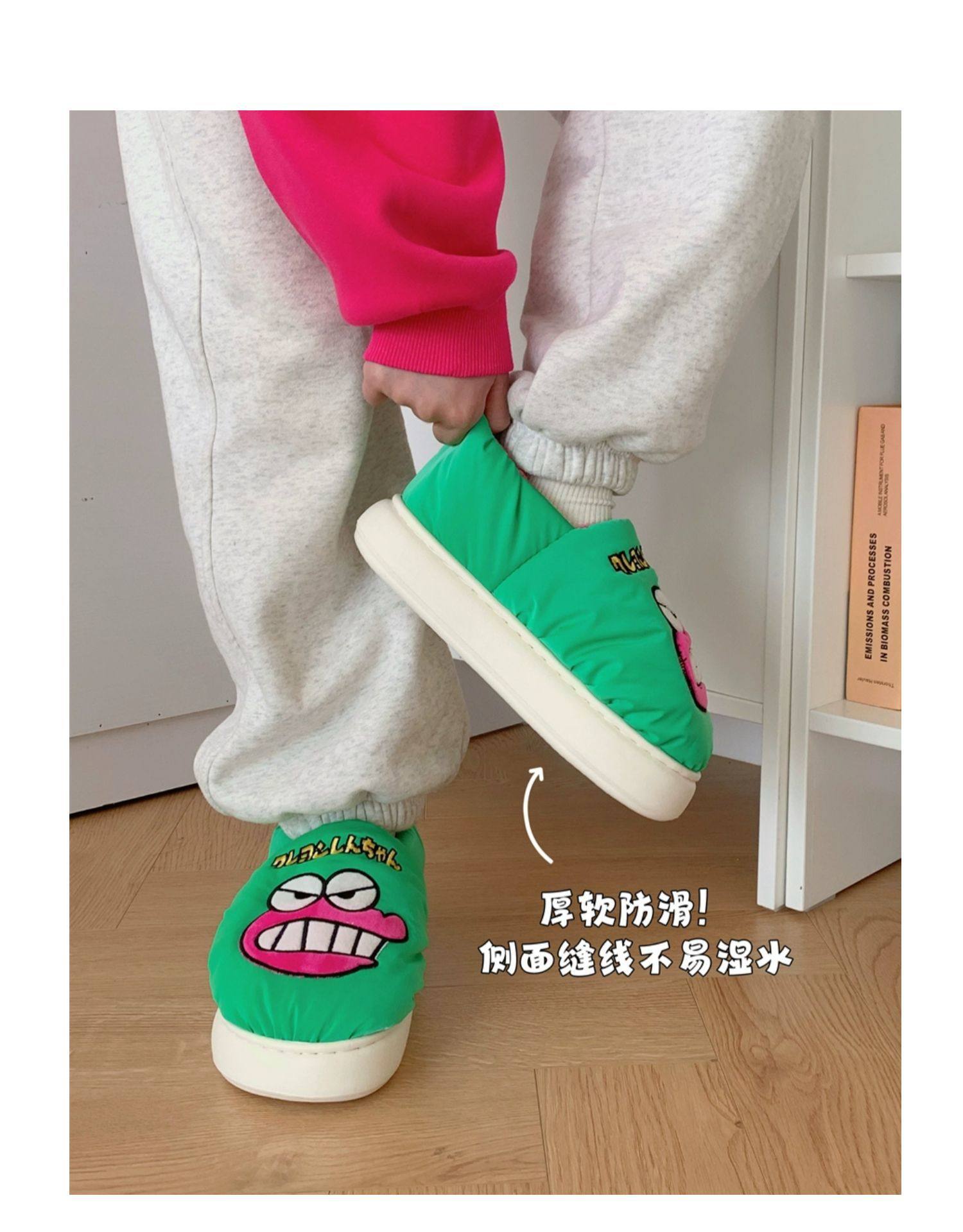 Осенне-зимние интернет-знаменитости Новая Теплая Сумка-каблук Лунная обувь домашний мелок голени крокодил Гора мистер хлопок тапочки для женщин