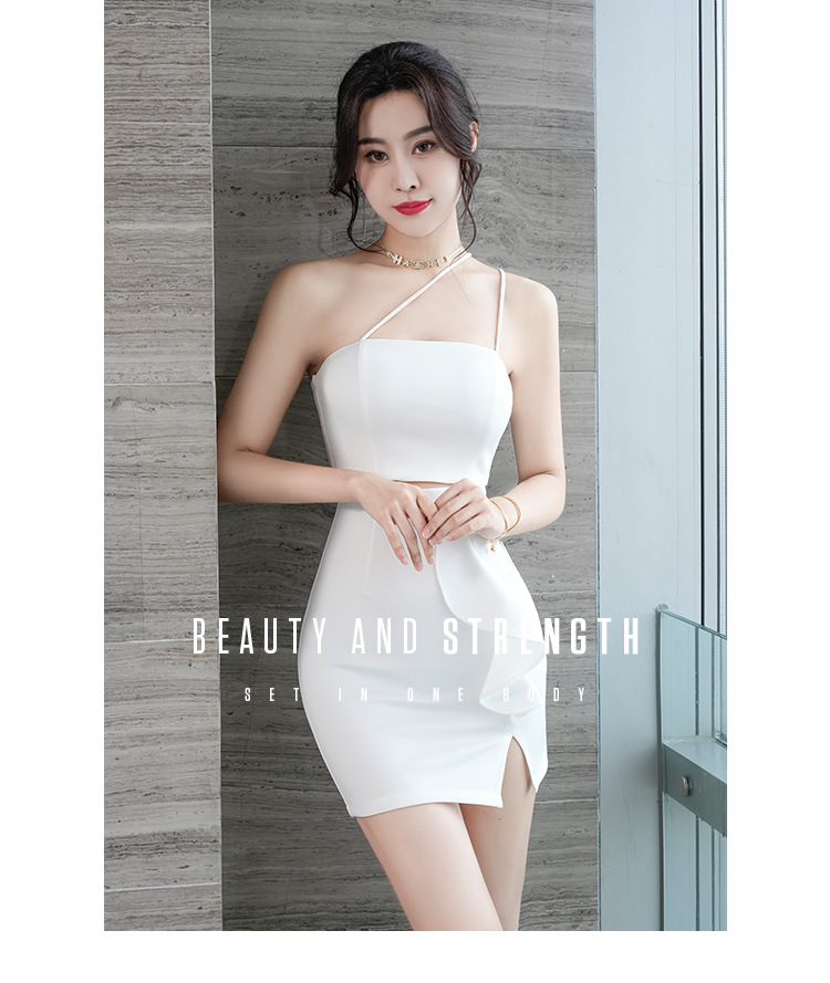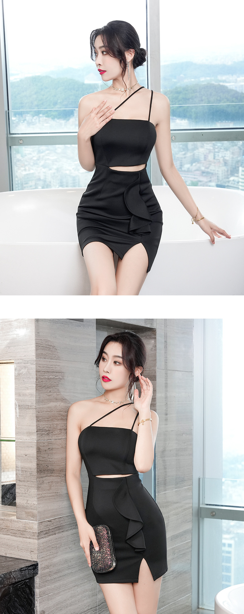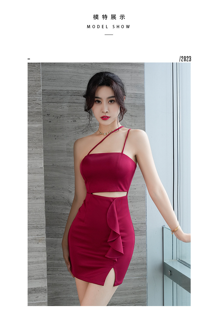 Новый Наклонный плечевой ремень сексуальный ночной клуб юбка-бедра узкая спинка искушение висит шеи полые чистые специи девушка платье