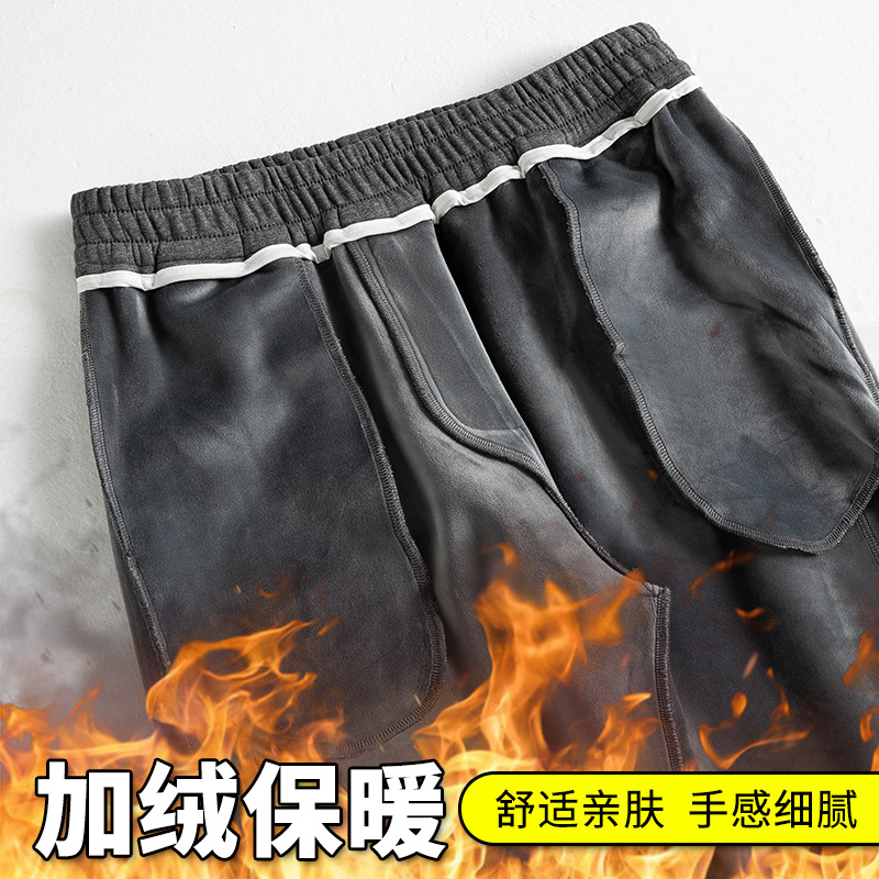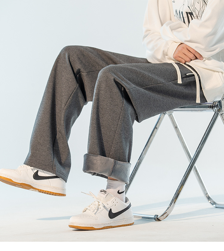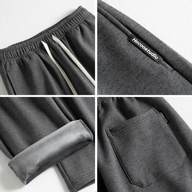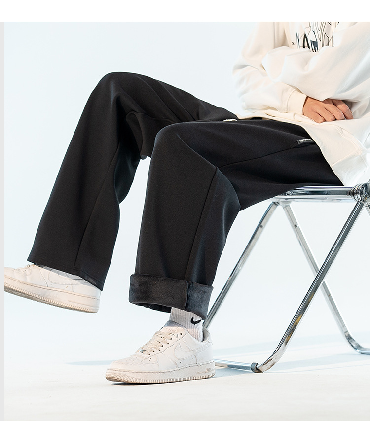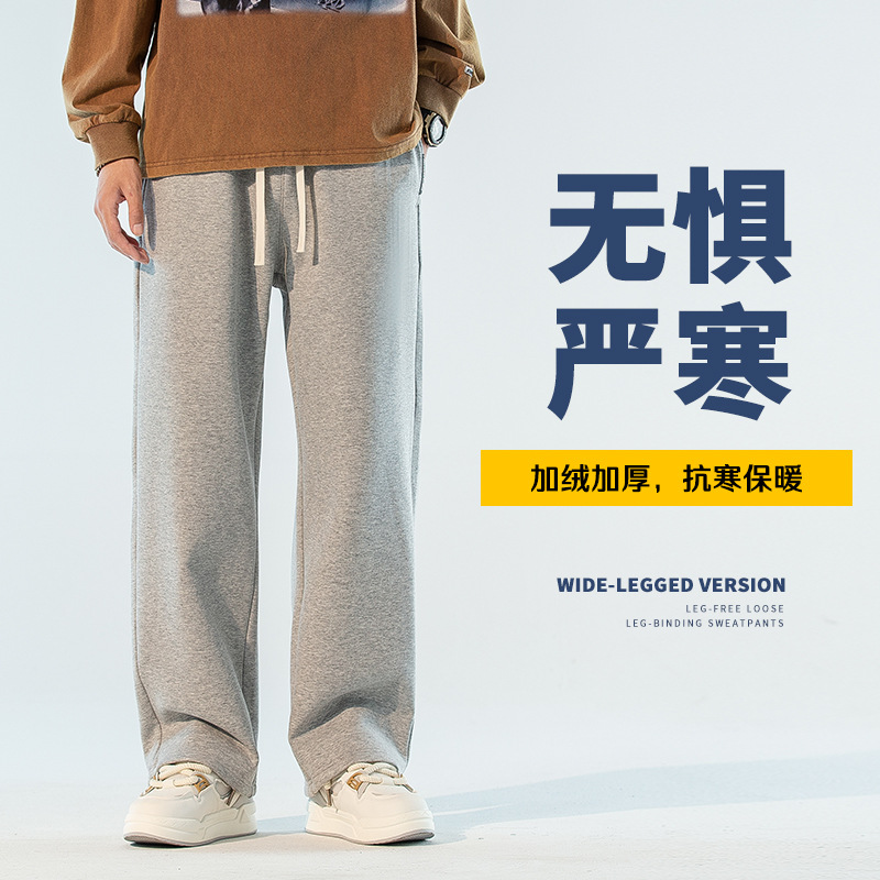 Осенне-зимние толстые повседневные брюки на флисовой подкладке, мужские прямые длинные брюки, мужские Модные брендовые спортивные штаны, Свободные теплые мужские спортивные штаны