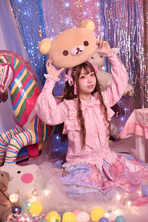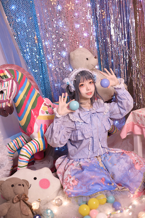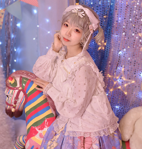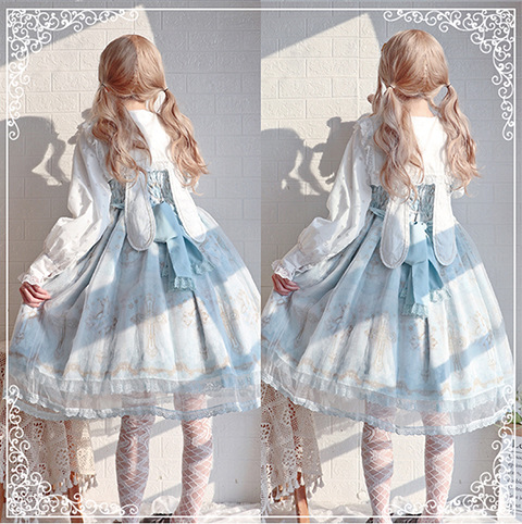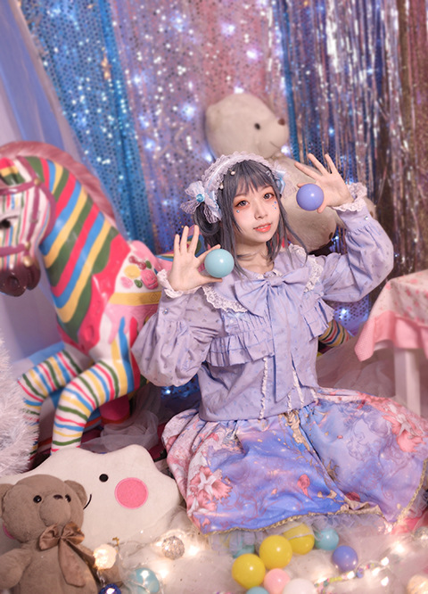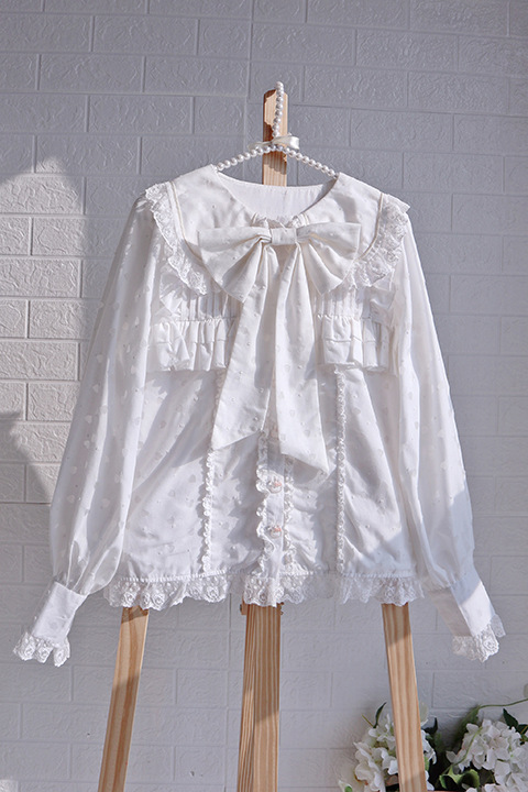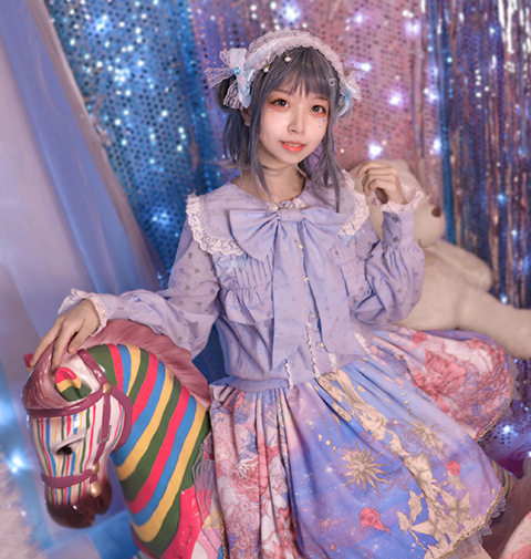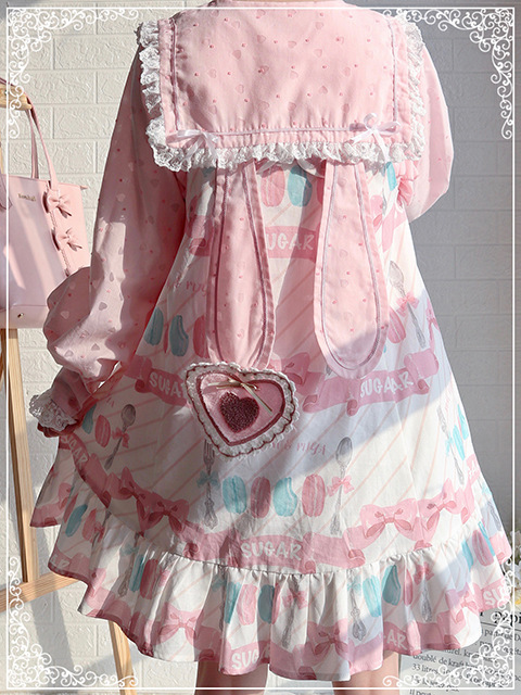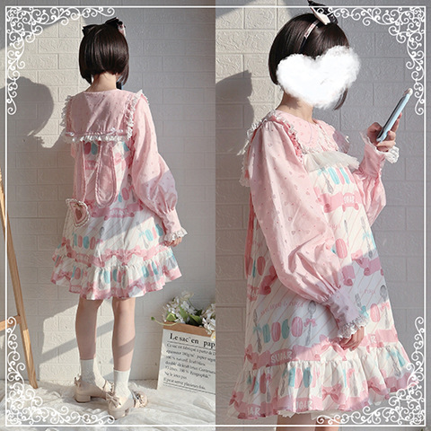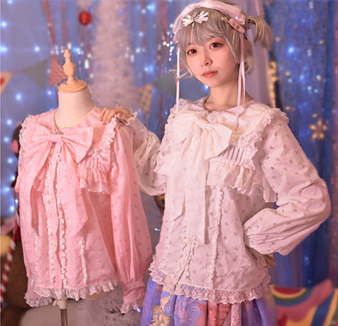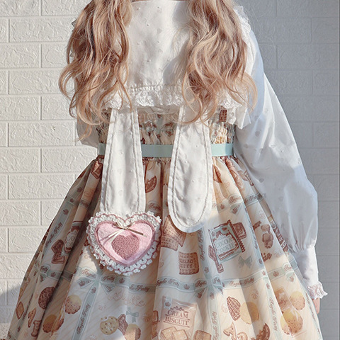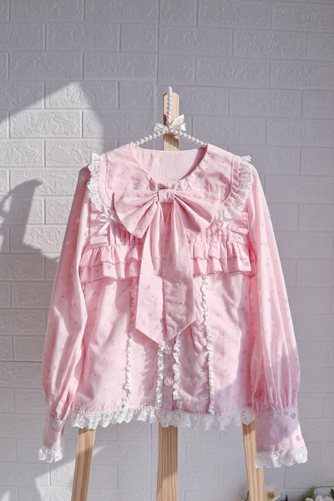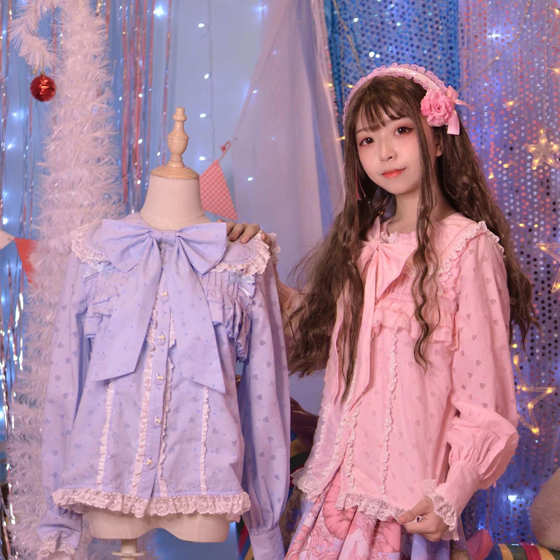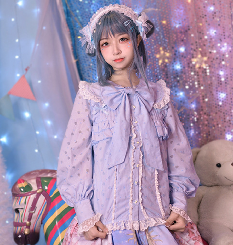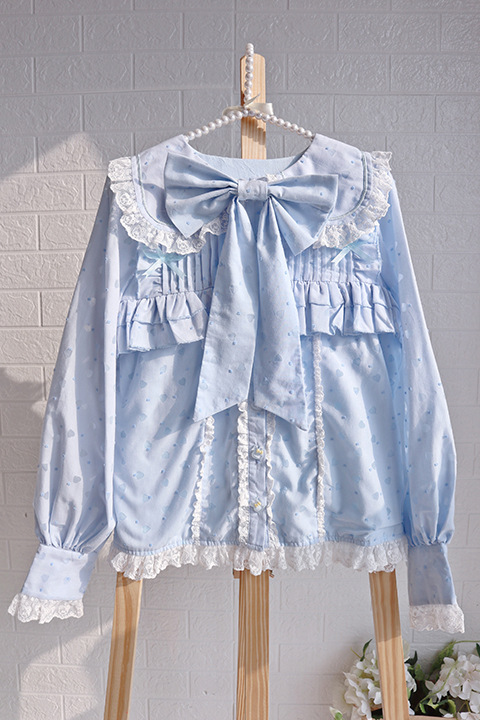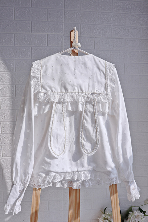 Настоящий выстрел оригинальный дизайн Весна и осень с длинными рукавами LOLITA * Милая * кроличьи уши темно-синий воротник внутренняя рубашка