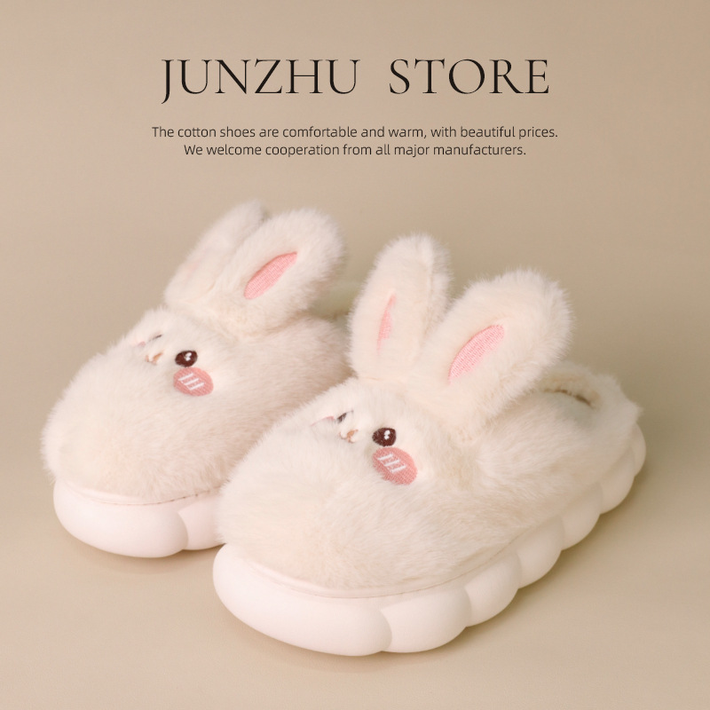 Милые плюшевые хлопковые тапочки с кроликом на толстой подошве для женщин, нескользящие домашние хлопковые тапочки на мягкой подошве для пар