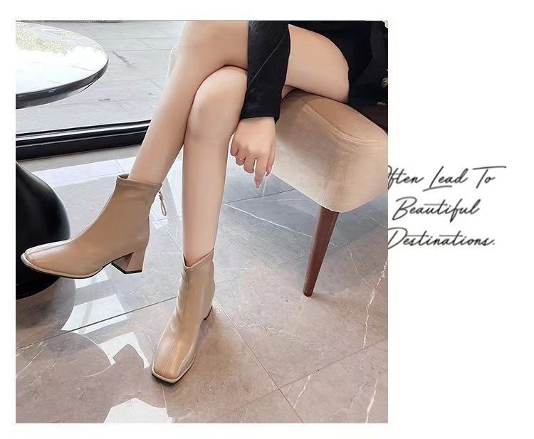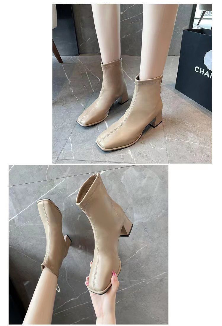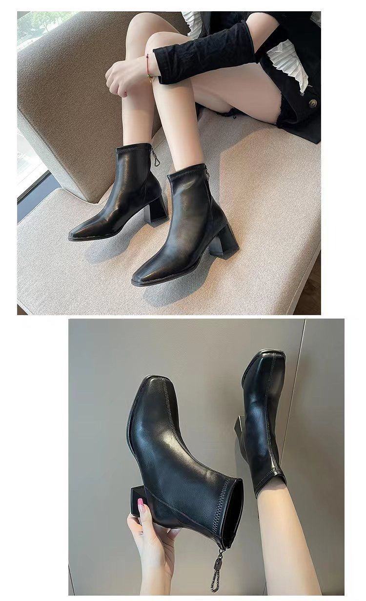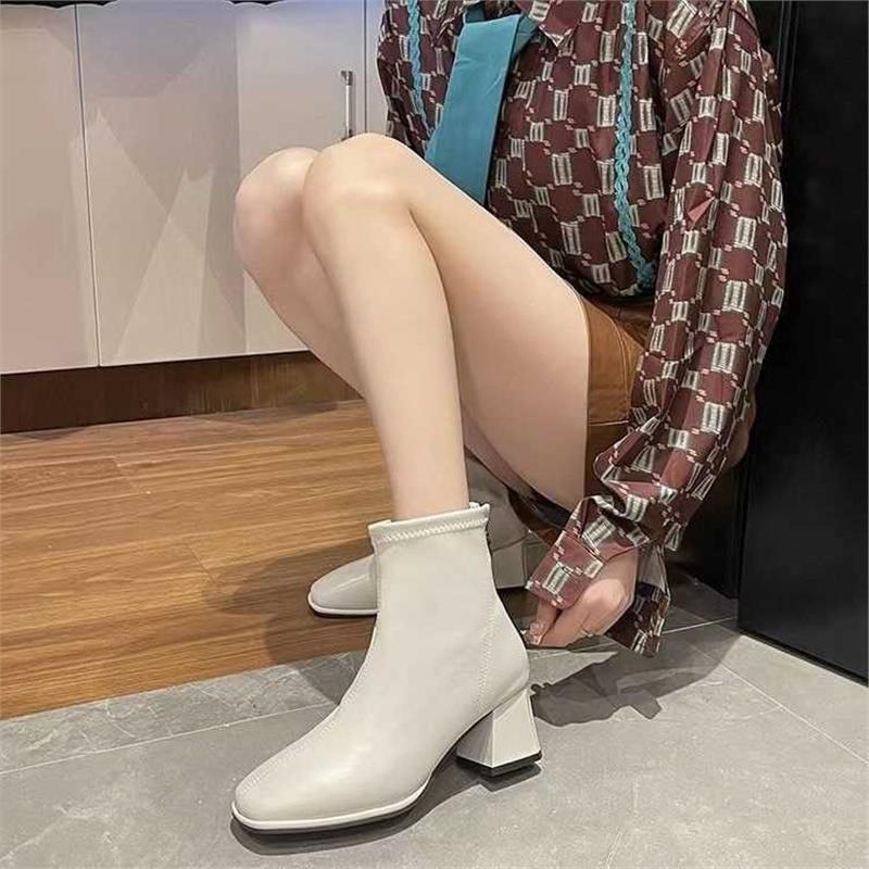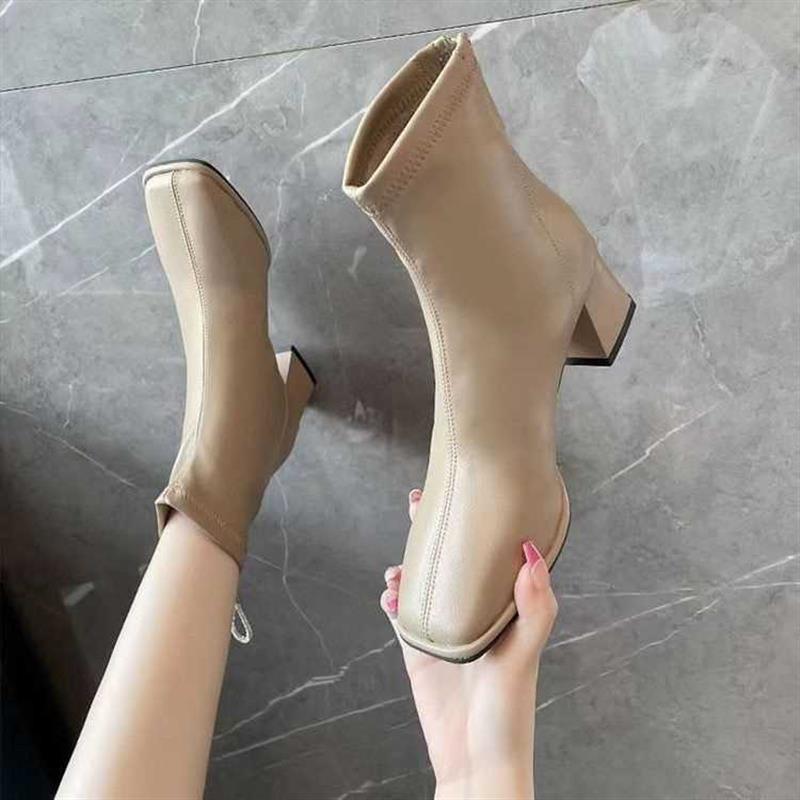 2023 новые кожаные короткие сапоги с квадратным каблуком и модные сапоги на молнии женские тонкие сапоги