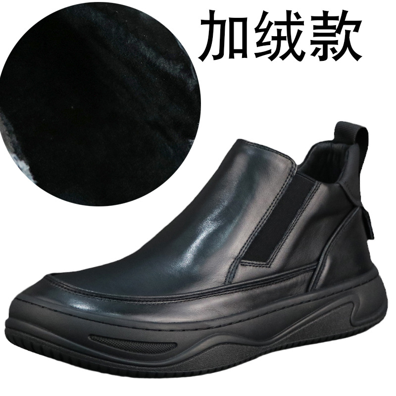 Ботинки из натуральной кожи, мужские высокие ботинки Martin, простые британские Универсальные ботинки челси на флисовой подкладке, повседневная кожаная обувь без шнуровки на толстой подошве