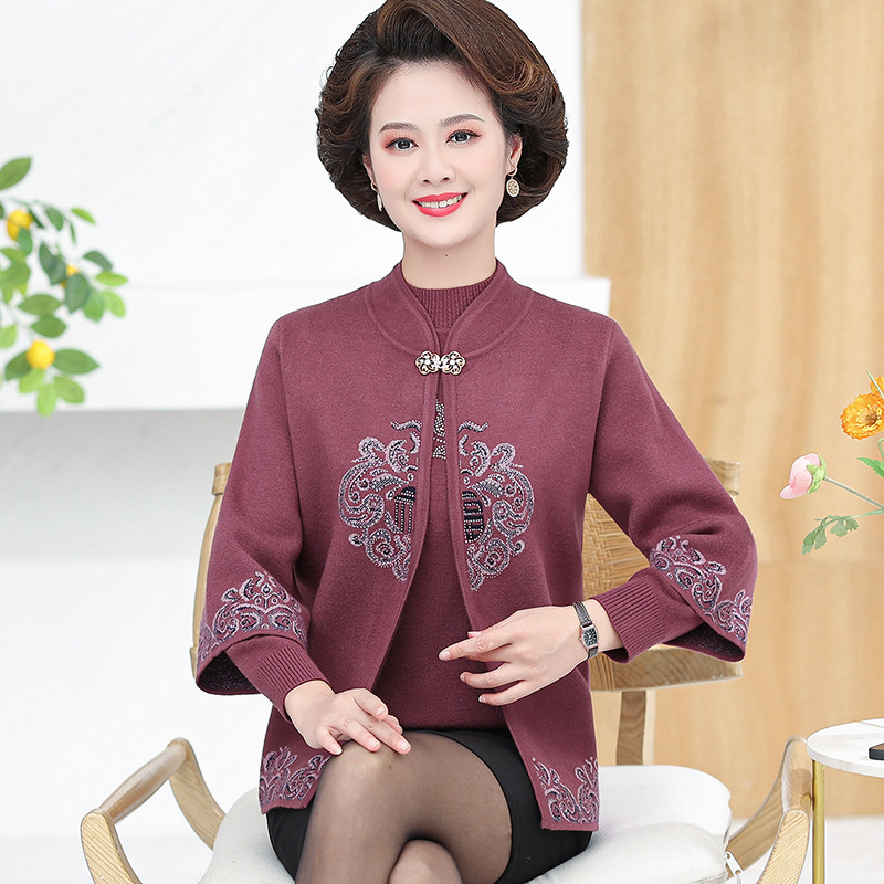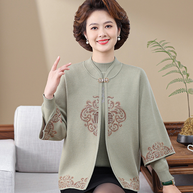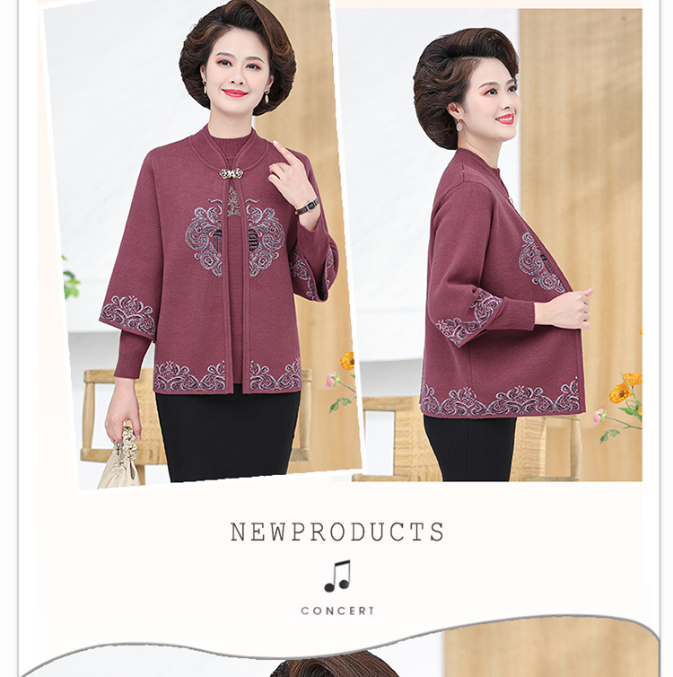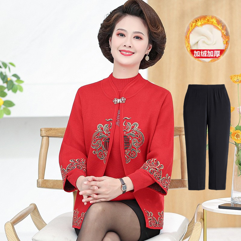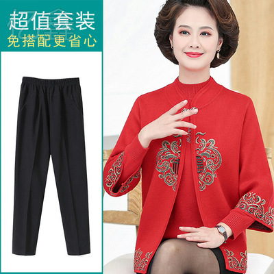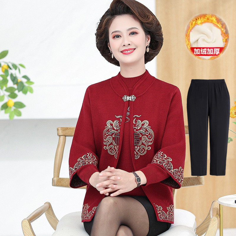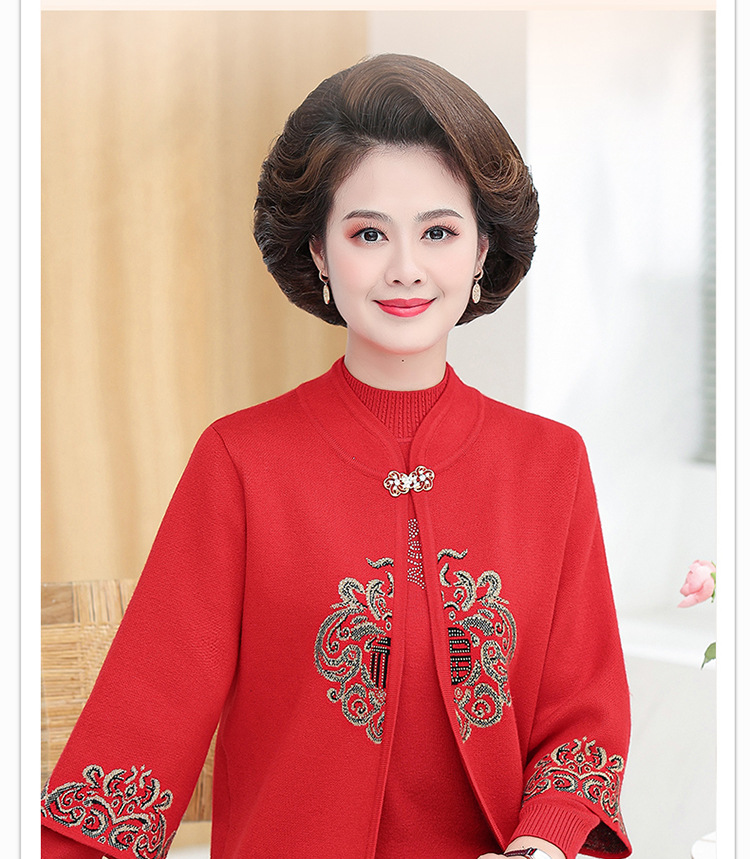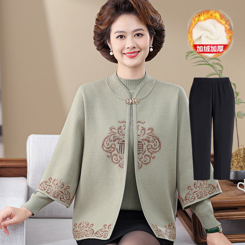 Весеннее трикотажное пальто для мамы с длинными рукавами Стильный костюм Свадебное платье для тещи для среднего и пожилого возраста Пиджак из двух предметов