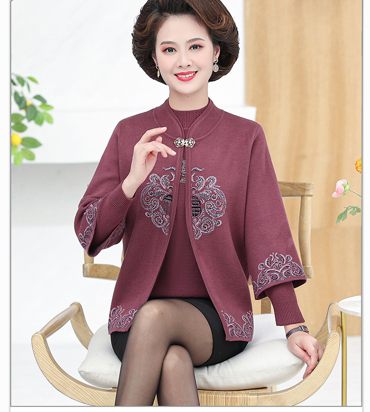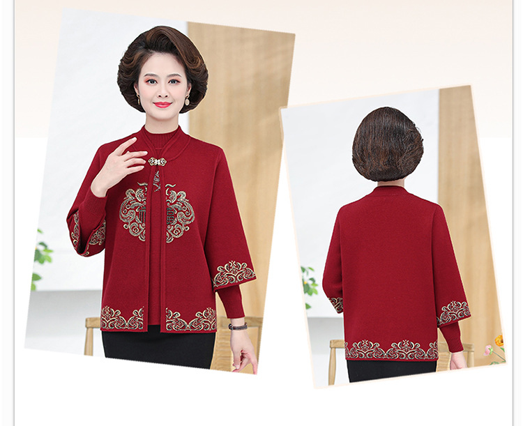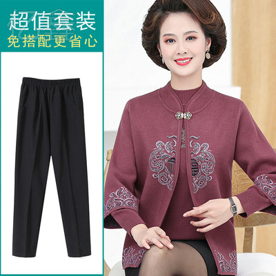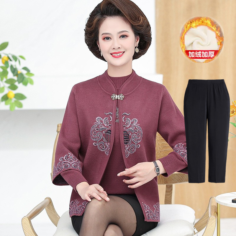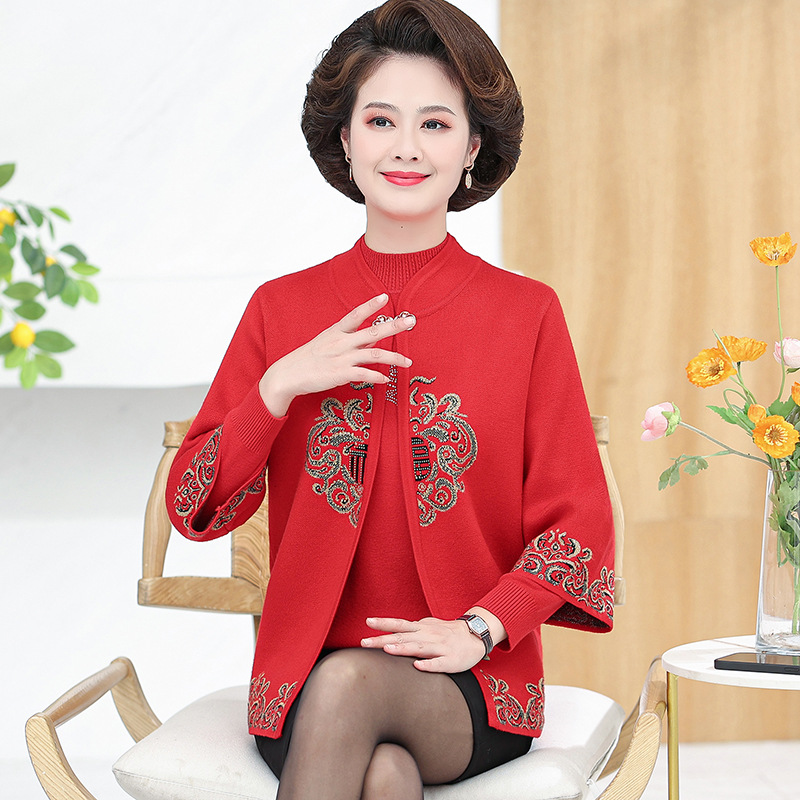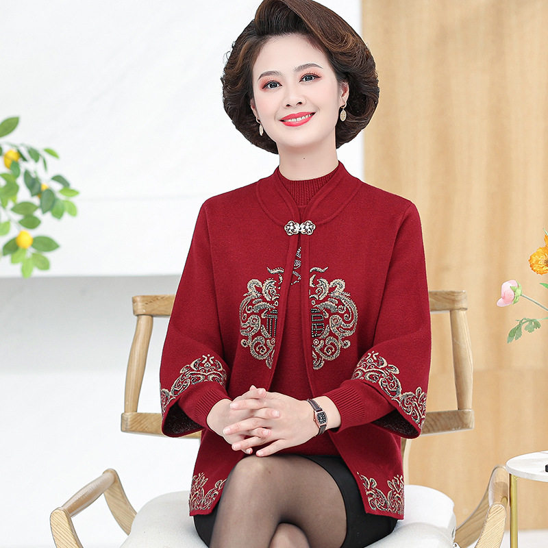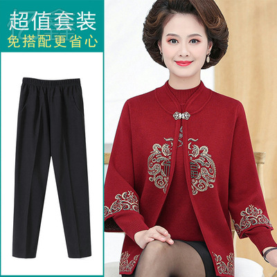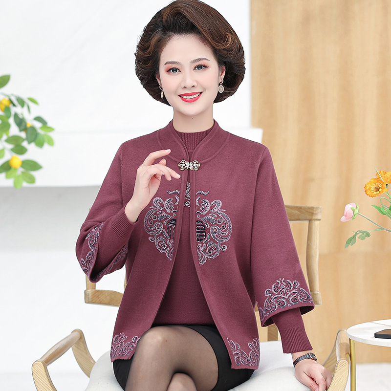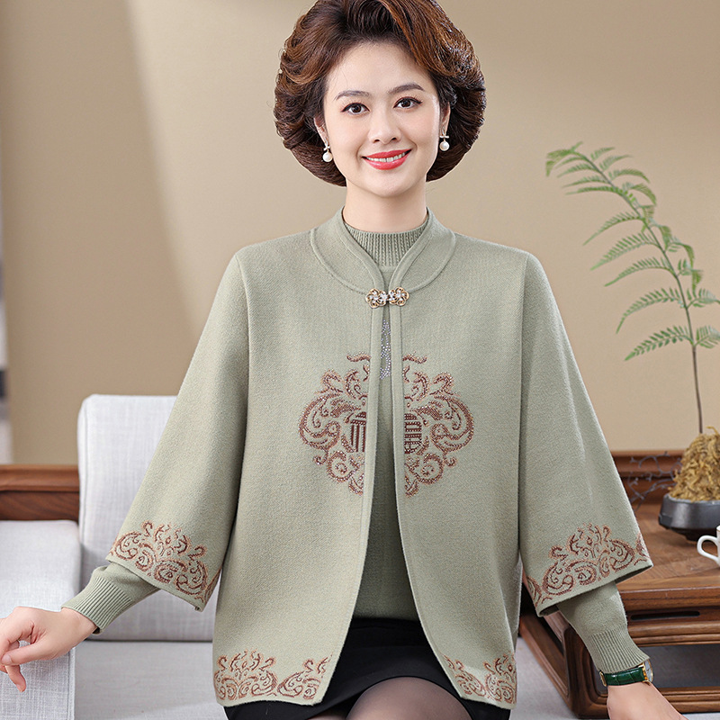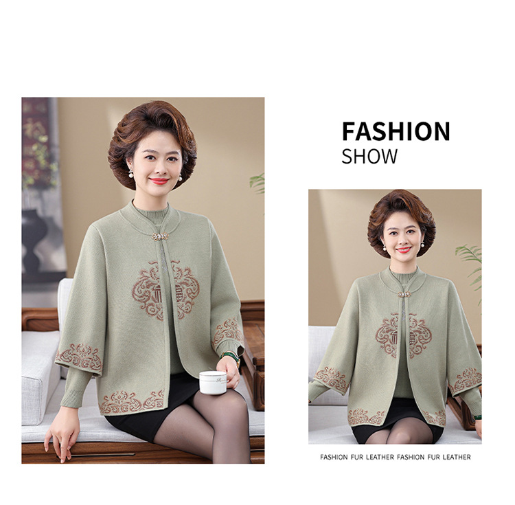 Весеннее трикотажное пальто для мамы с длинными рукавами Стильный костюм Свадебное платье для тещи для среднего и пожилого возраста Пиджак из двух предметов
