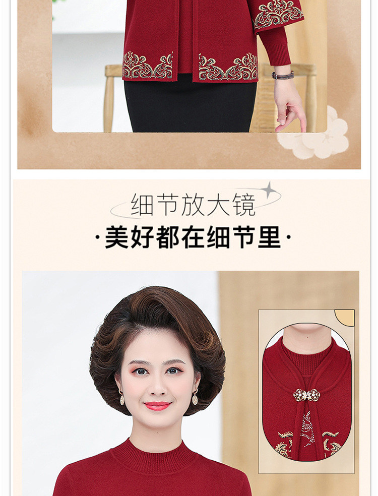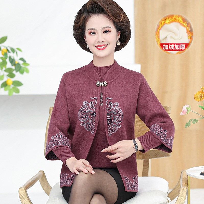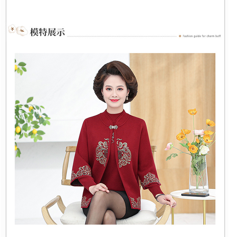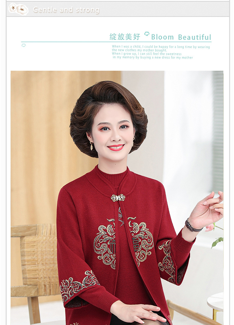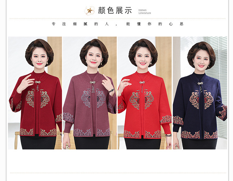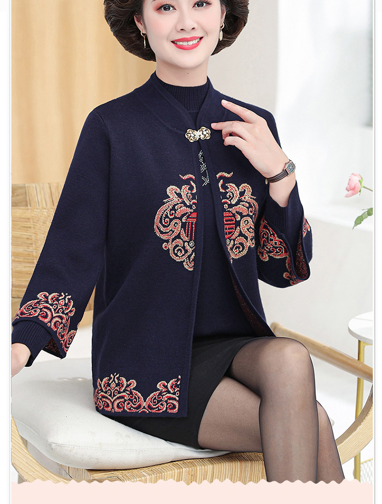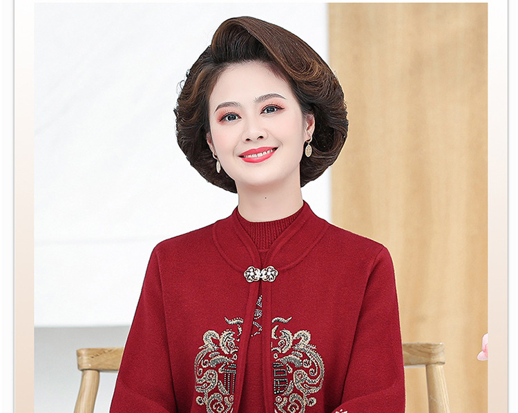 Весеннее трикотажное пальто для мамы с длинными рукавами Стильный костюм Свадебное платье для тещи для среднего и пожилого возраста Пиджак из двух предметов