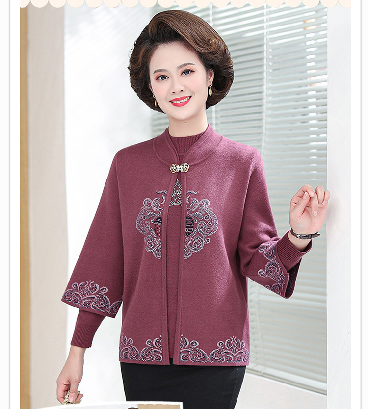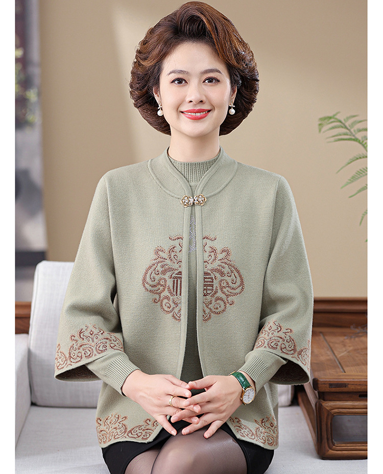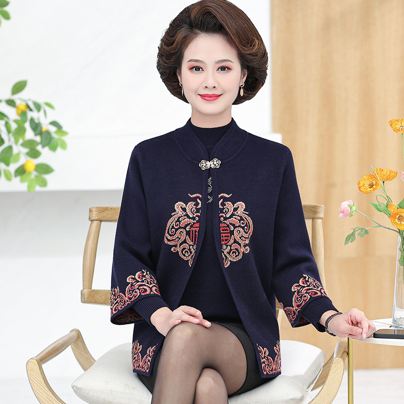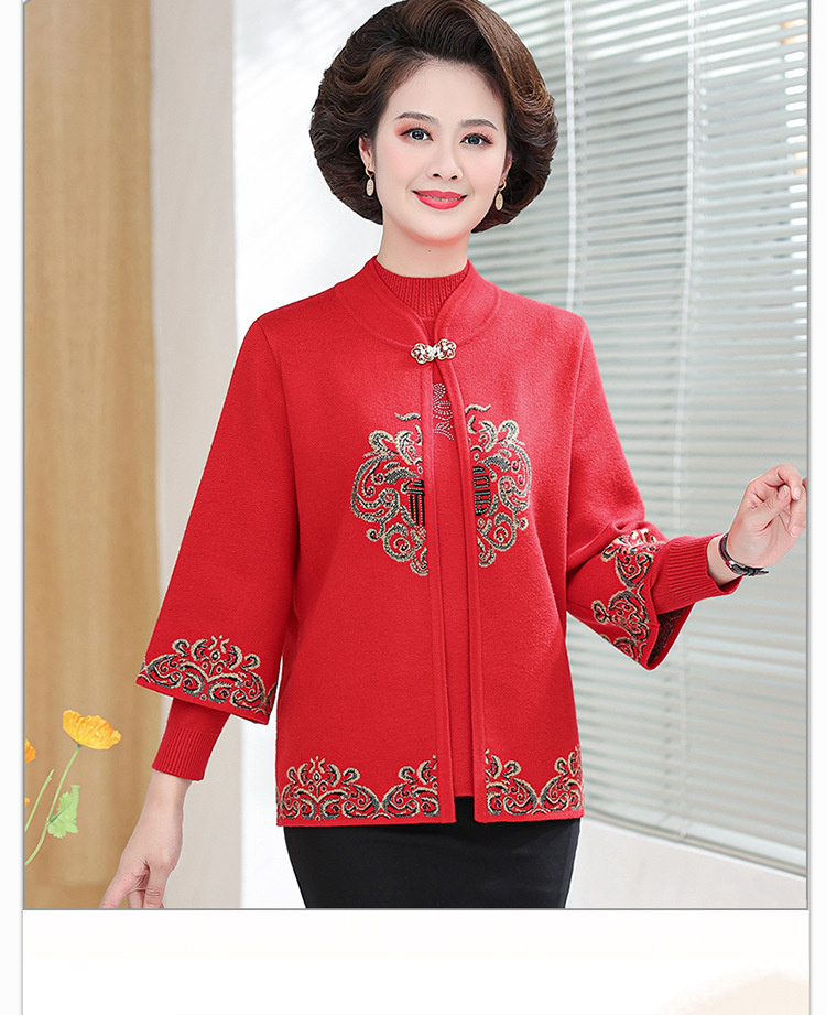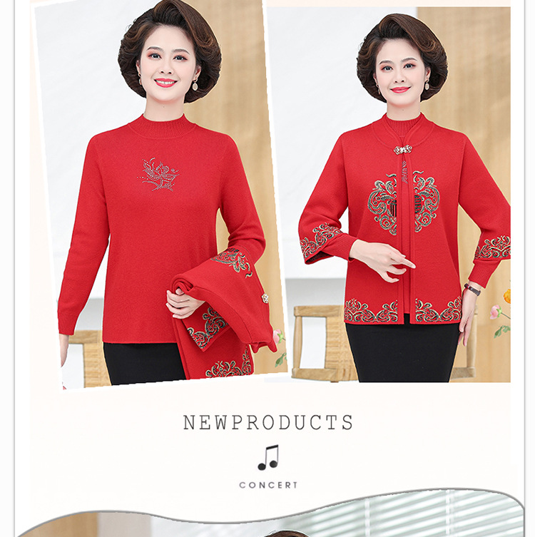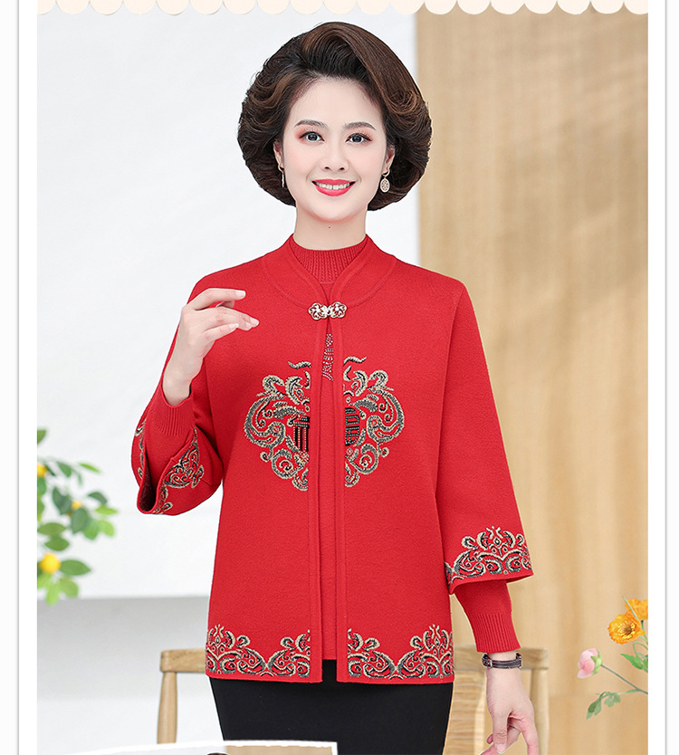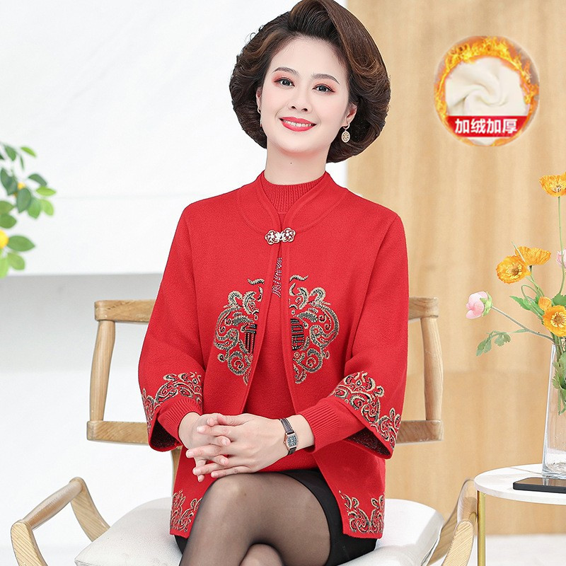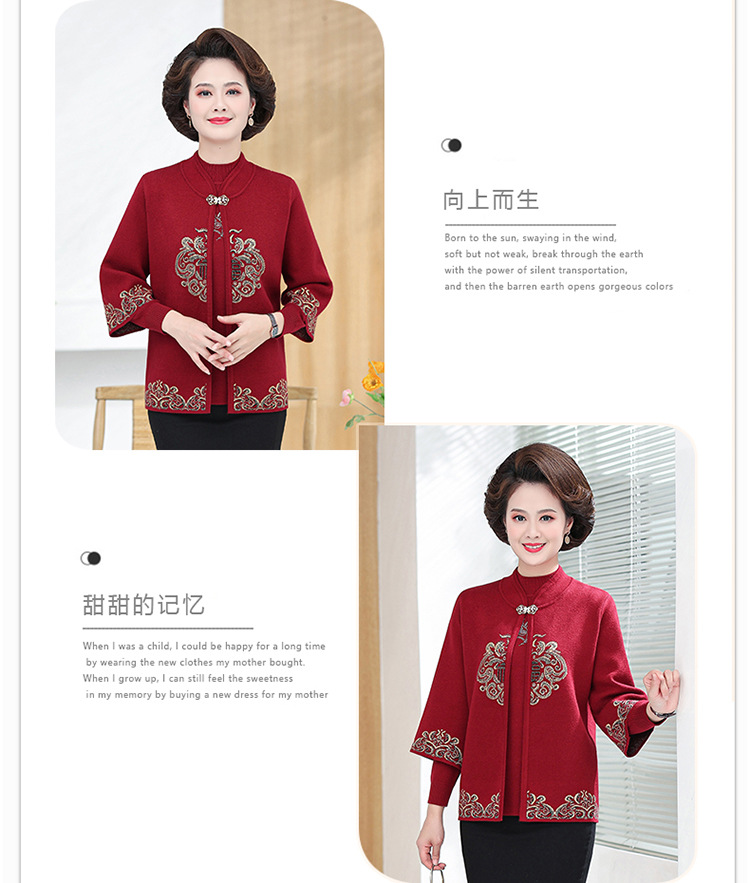 Весеннее трикотажное пальто для мамы с длинными рукавами Стильный костюм Свадебное платье для тещи для среднего и пожилого возраста Пиджак из двух предметов
