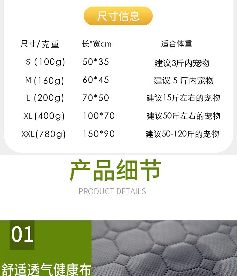 S【50×35CM】90 грамм; М【60×45см】140 грамм; L【70×50см】165 грамм; XL【100×70см】320 грамм; XXL【150×90см】650 грамм