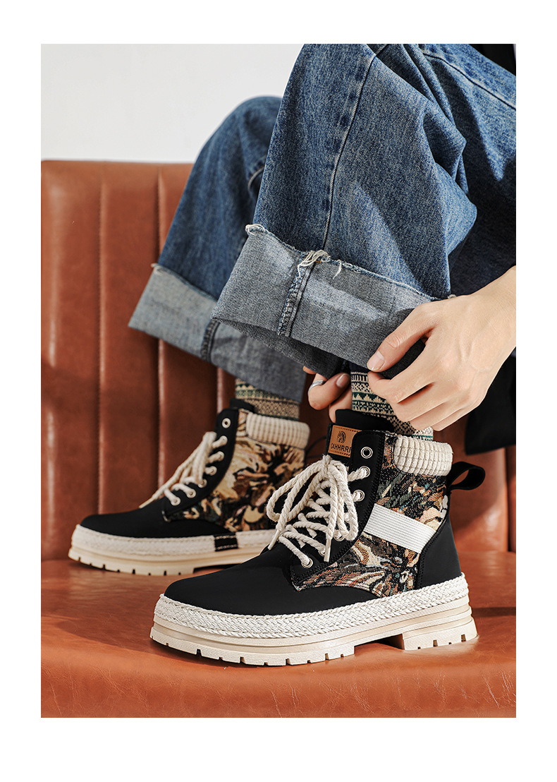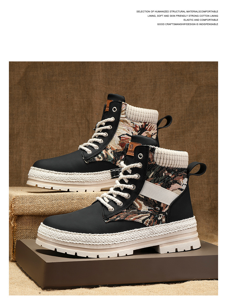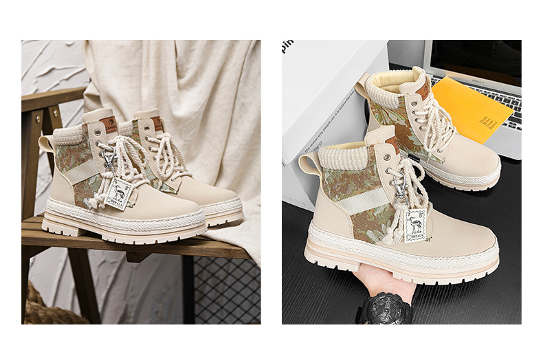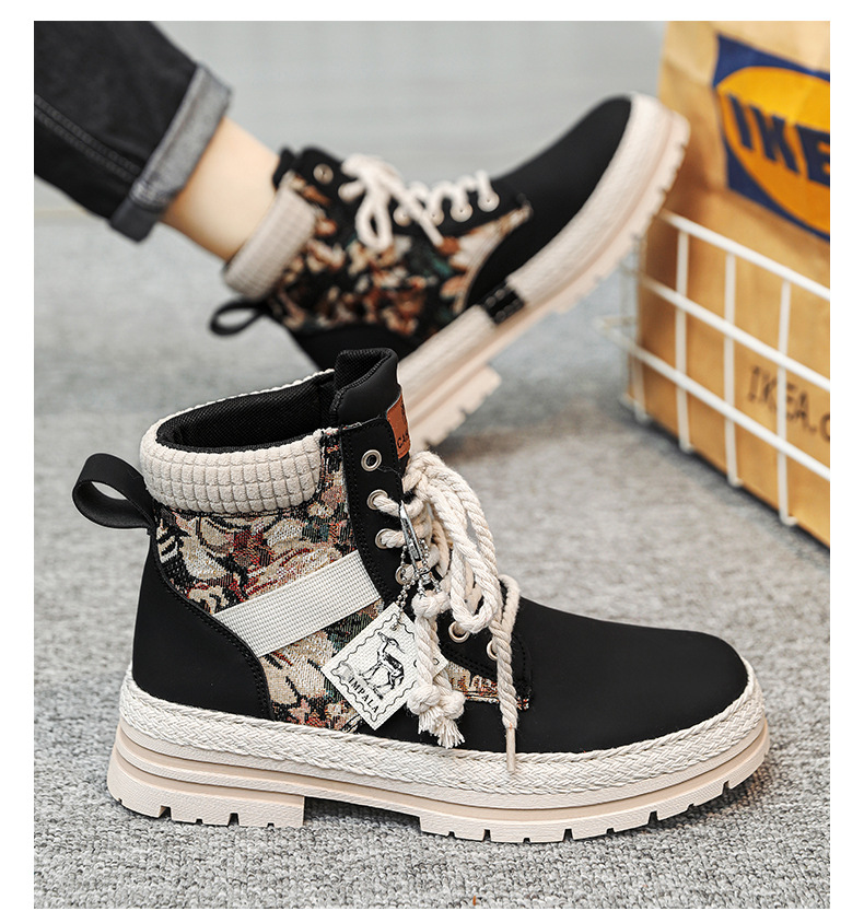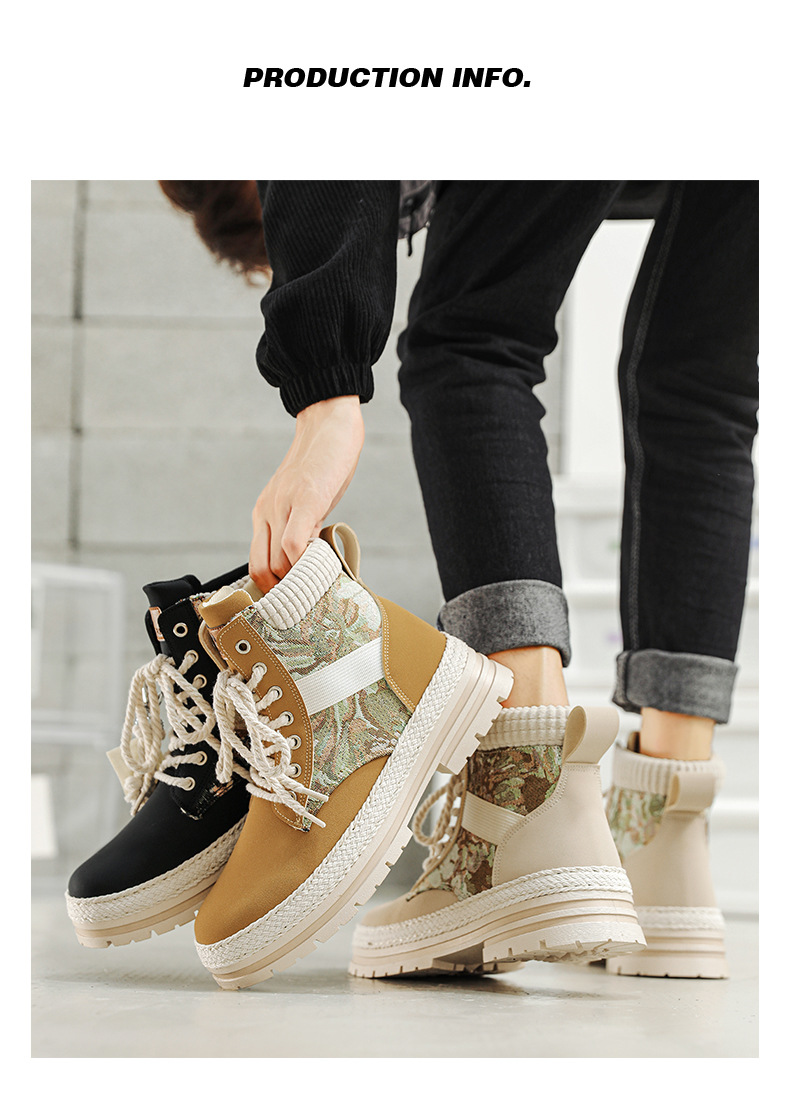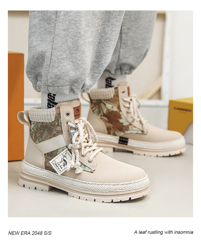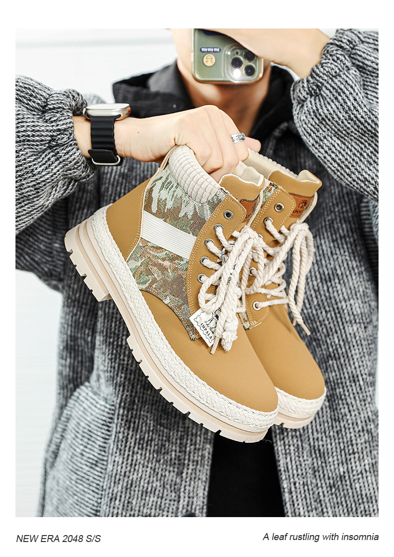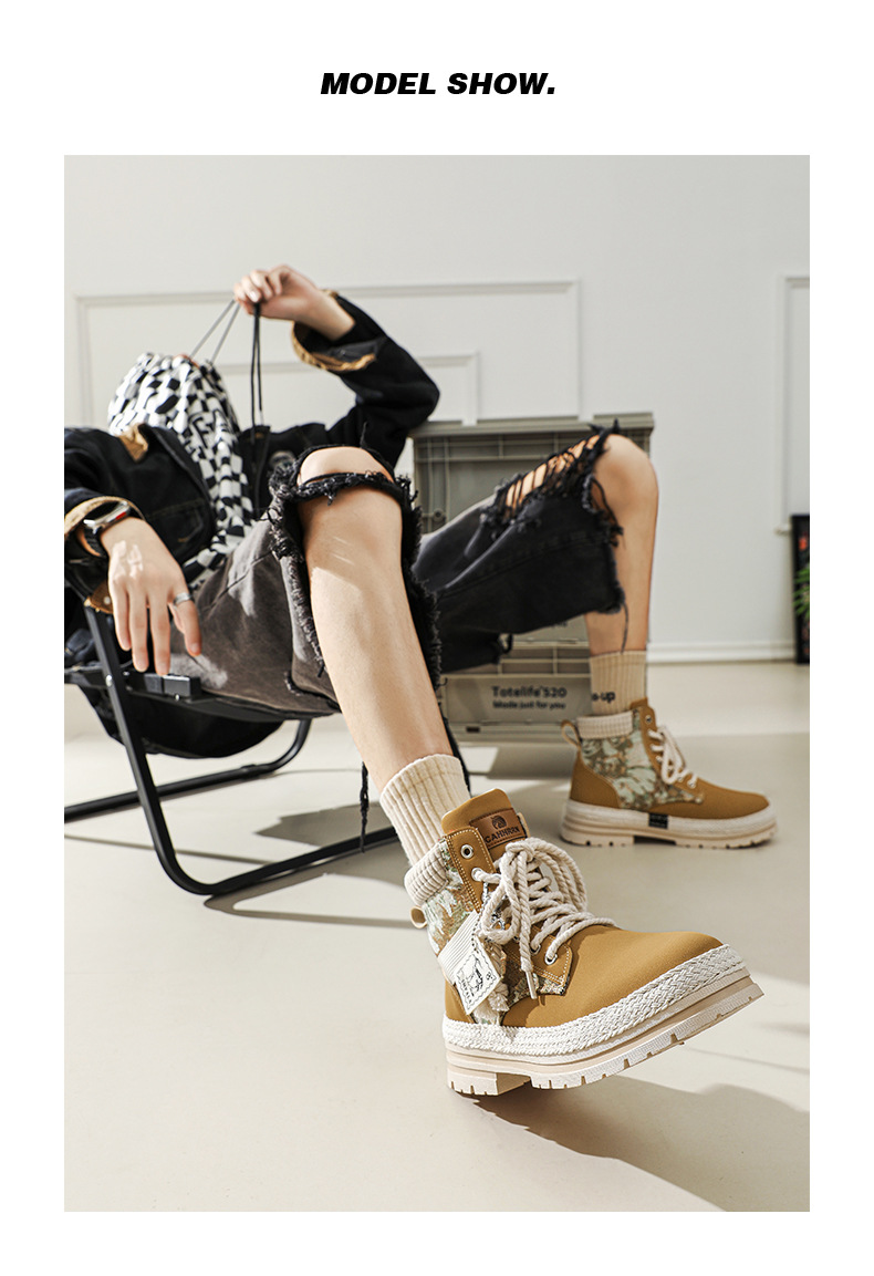 Мужские ботинки Мартин 2023, новые осенние рабочие ботинки на толстой подошве, увеличивающие рост, универсальные повседневные мужские туфли на низком каблуке с соломенной подошвой.