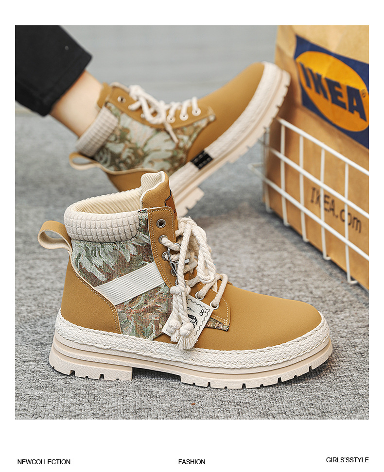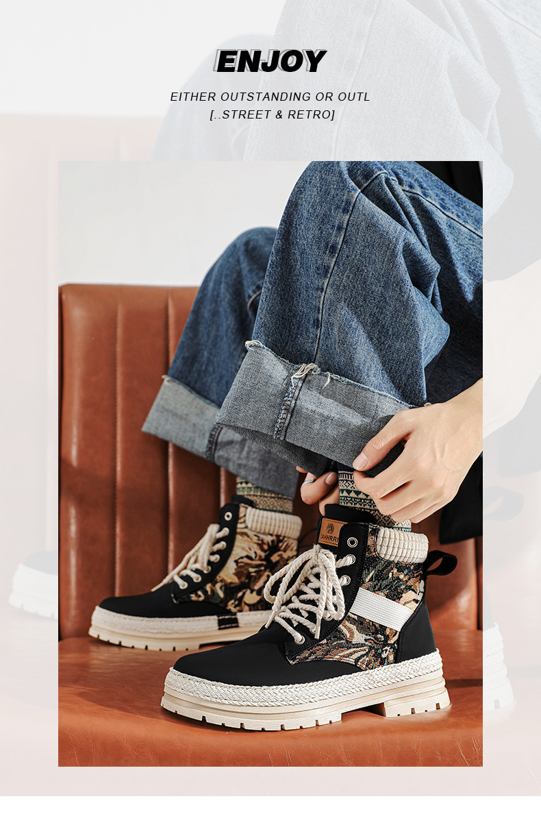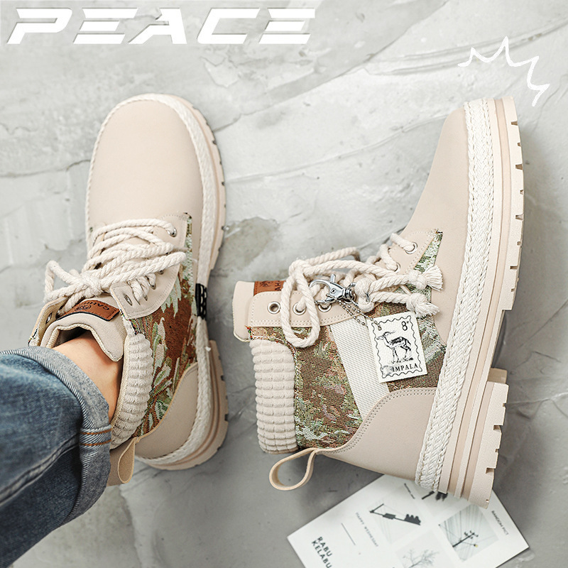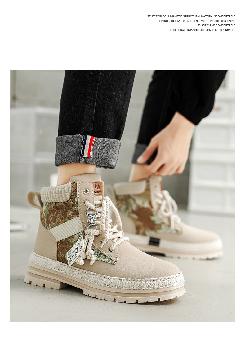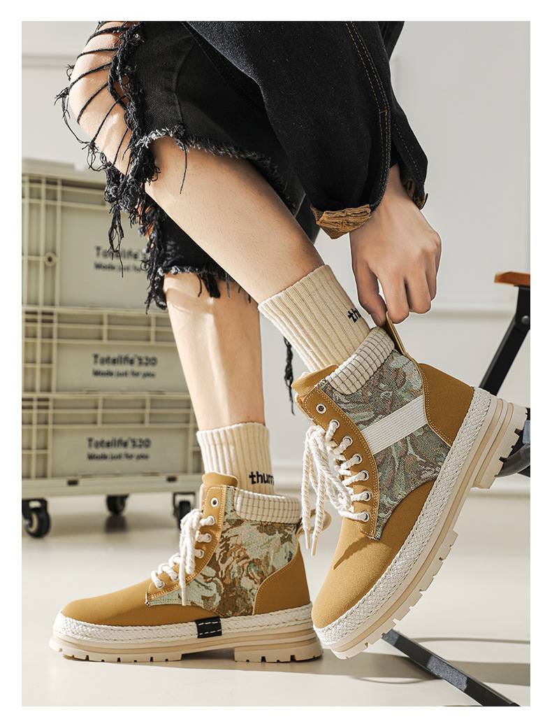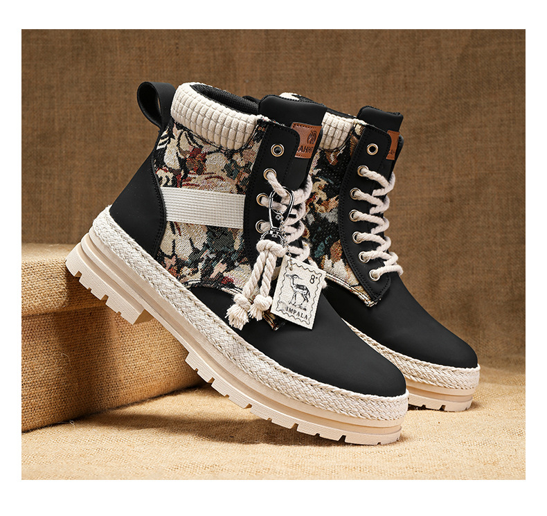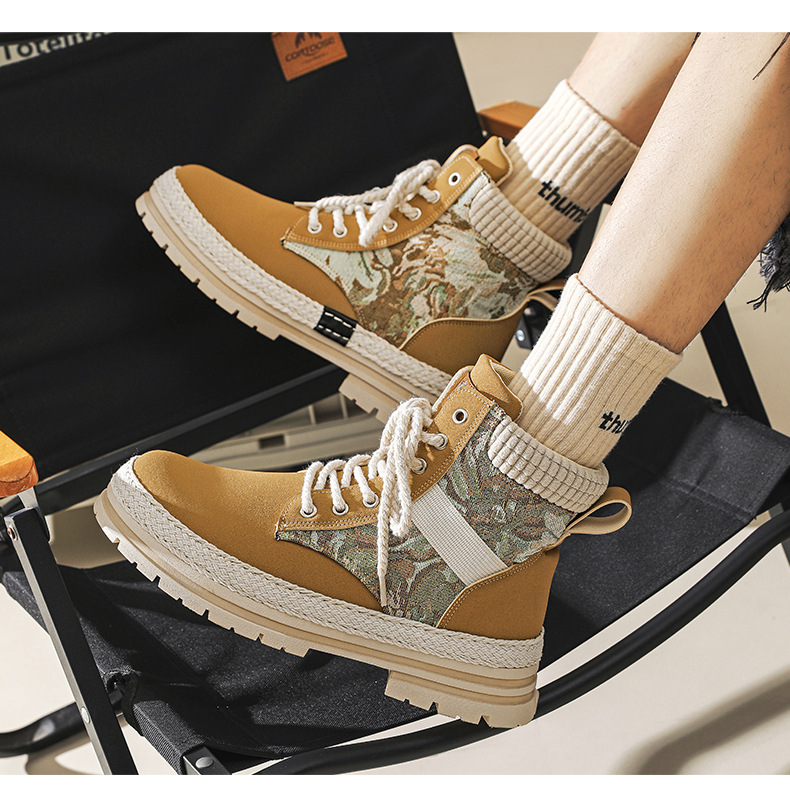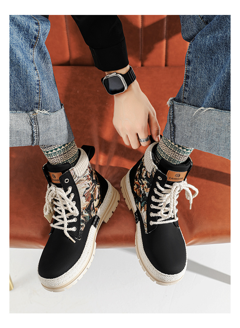 Мужские ботинки Мартин 2023, новые осенние рабочие ботинки на толстой подошве, увеличивающие рост, универсальные повседневные мужские туфли на низком каблуке с соломенной подошвой.