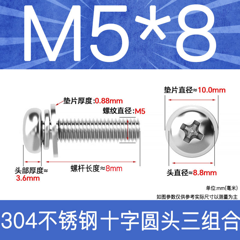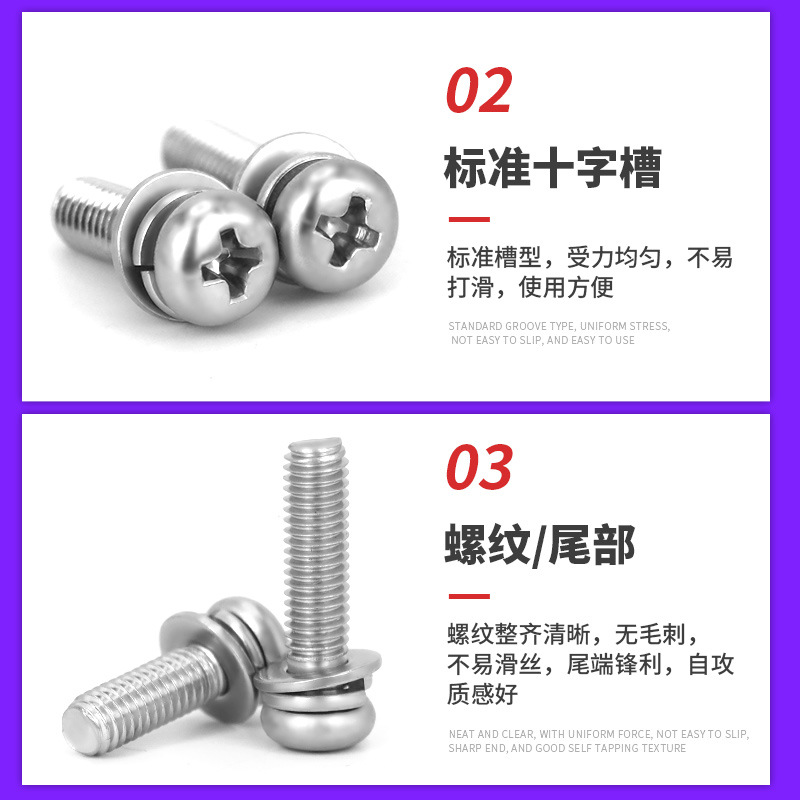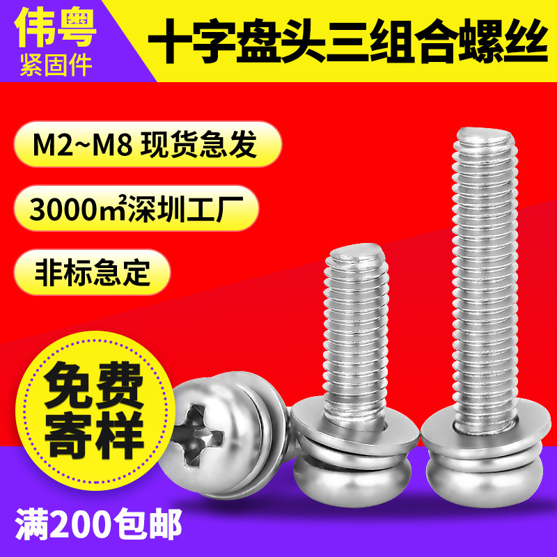 304 из нержавеющей стали с крестообразной Головкой Комбинированный винт GB9074.8 с поперечной канавкой круглая головка плоская пружина три комбинированных винта