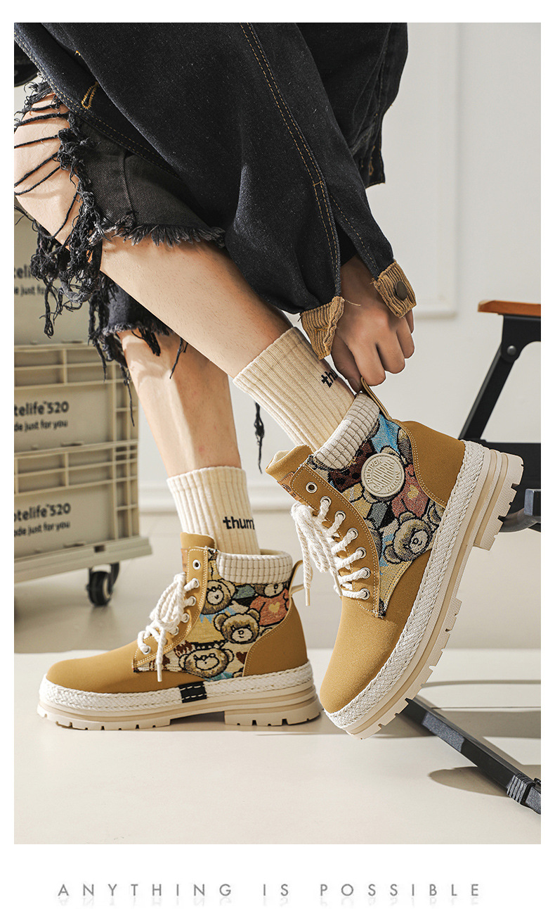 Высокая мужская обувь осень-зима новая корейская версия маленьких медвежьих ботинок, мотоциклетные ботинки, наружные ретро кожаные ботинки, высокие ботинки