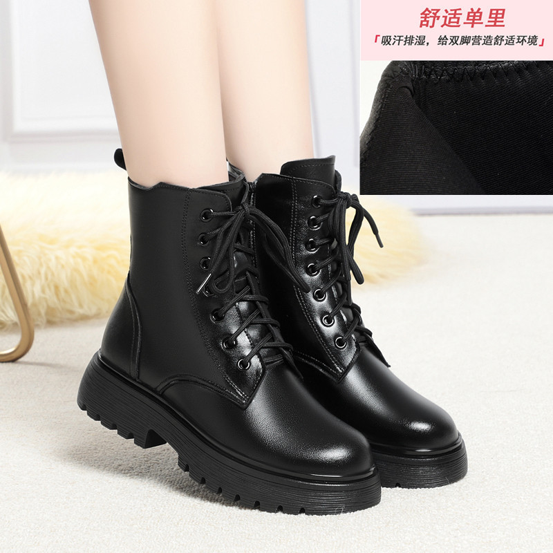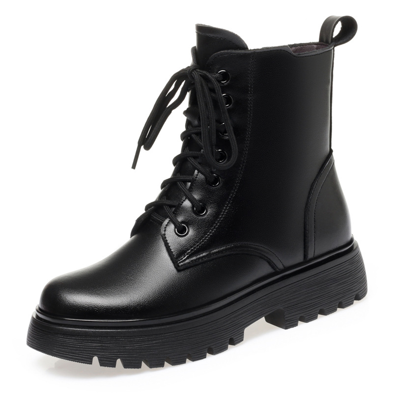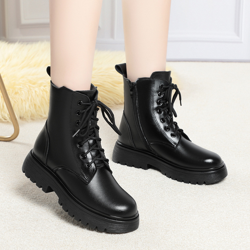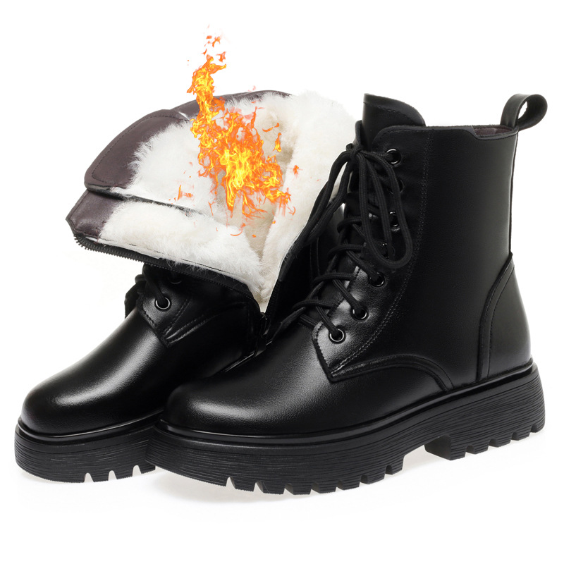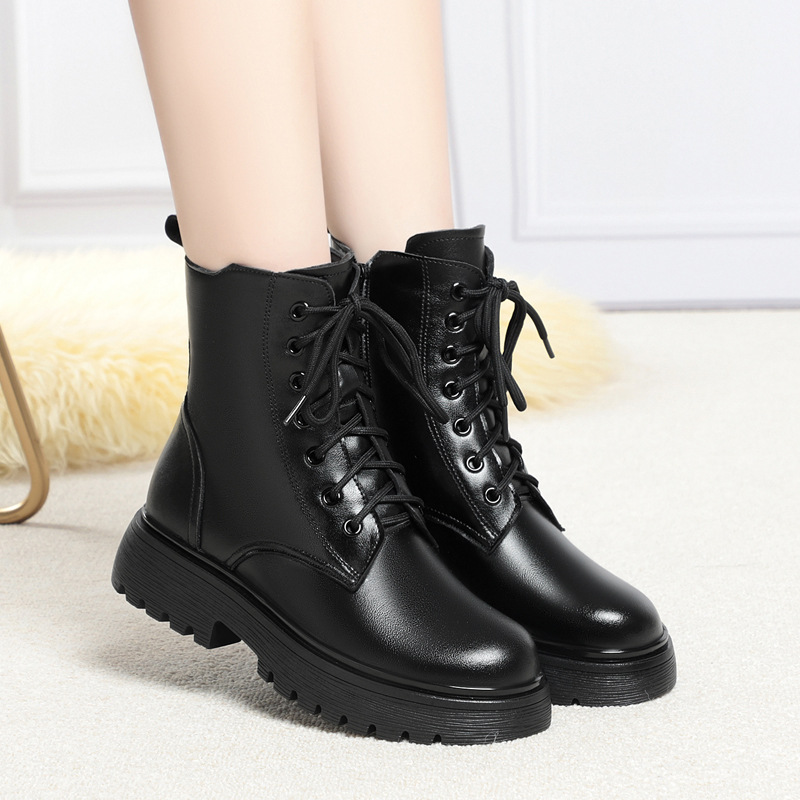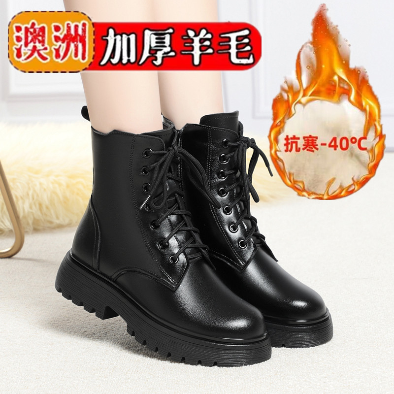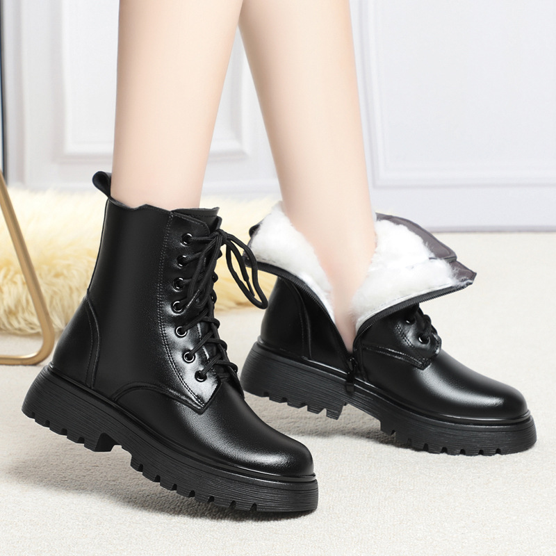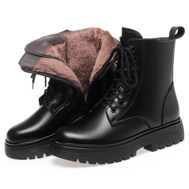 Зимние Ботинки Martin из мягкой кожи, женские ботинки на плоской подошве на флисовой подкладке, утолщенные хлопковые туфли на низком каблуке, 2023, хлопковые сапоги с мягкой подошвой