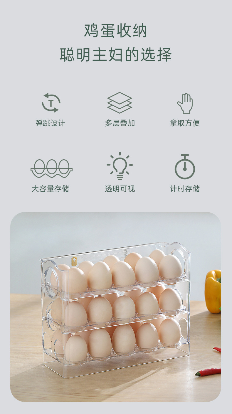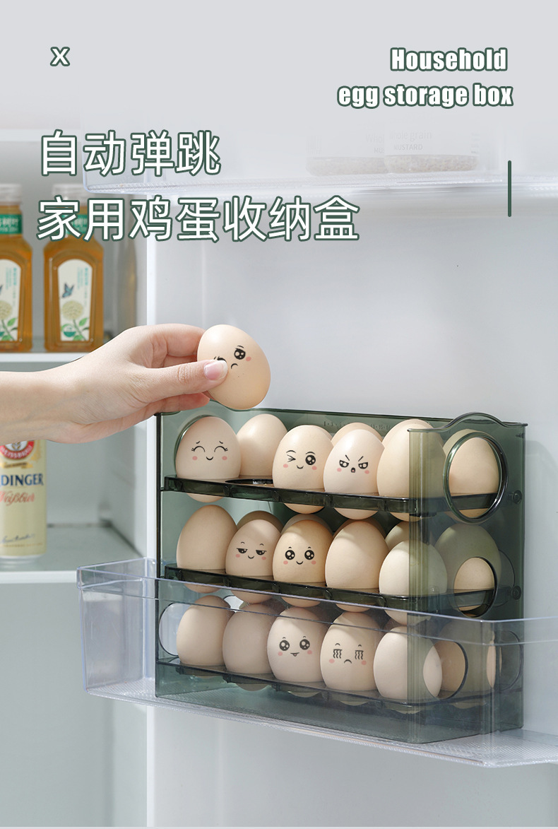 Коробка для яиц оптом автоматический отскок Боковая дверь холодильника трехслойная кухонная многофункциональная коробка для хранения яиц для хранения даты