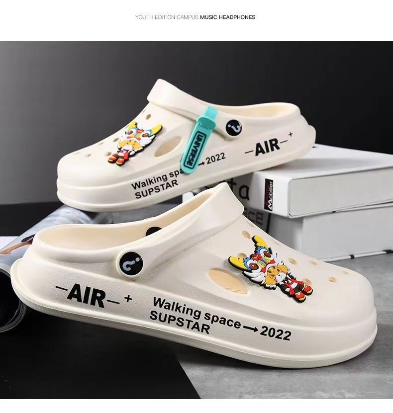 Модные новые повседневные сабо для мужчин, уличные нескользящие, устойчивые к запахам, закрытые тапочки для женщин, на толстой подошве, в студенческом летнем стиле.