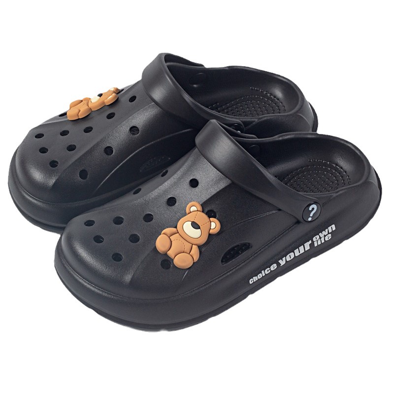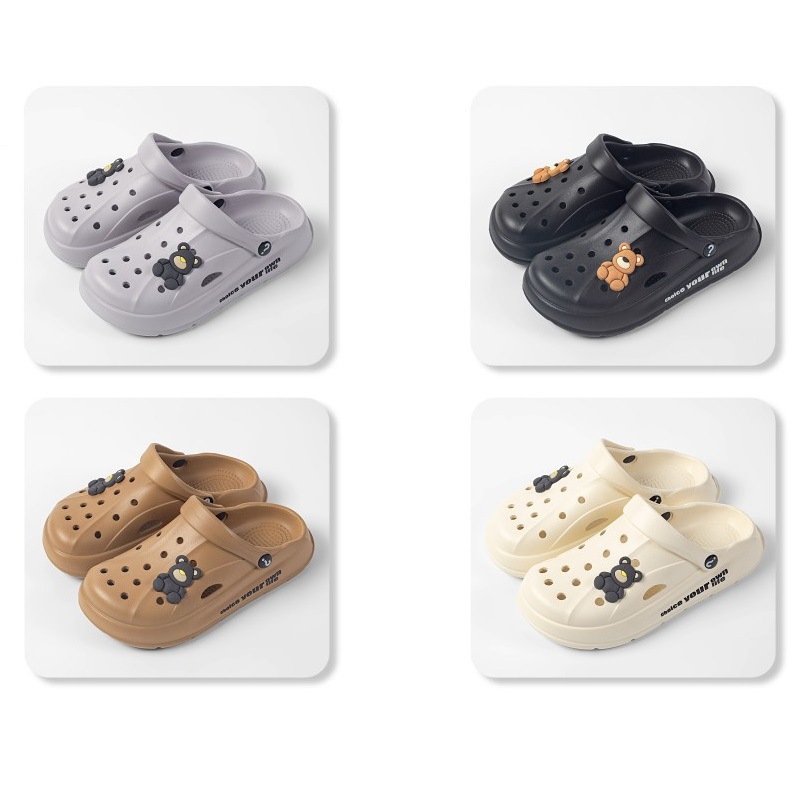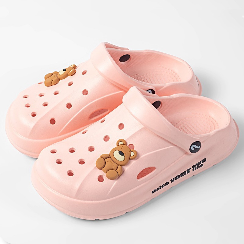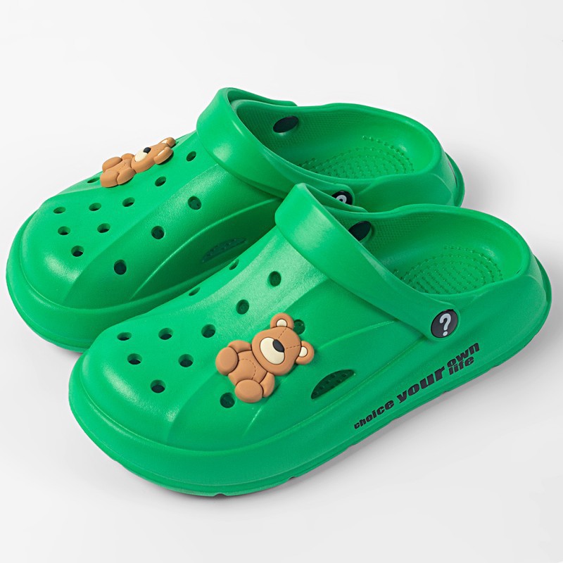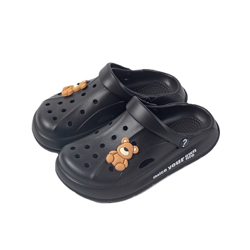 Чистые красные однотонные сандалии и тапочки Баотоу с мультяшным медведем, уличная одежда, милая Повседневная дышащая обувь с мягким дном и отверстиями для родителей и детей оптом
