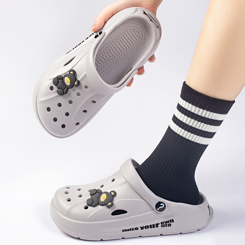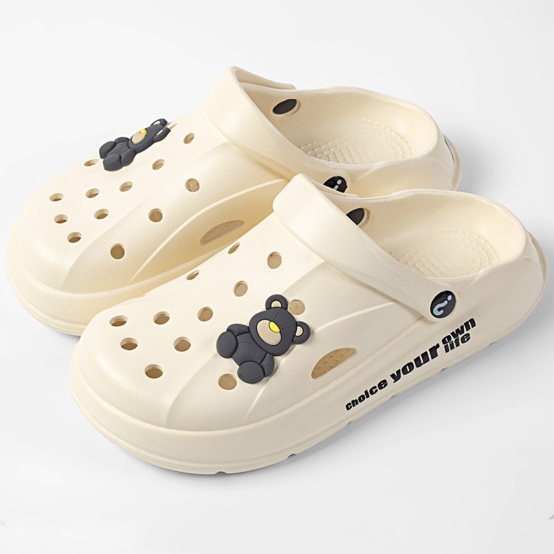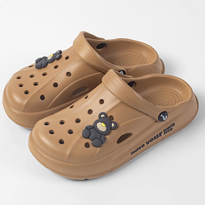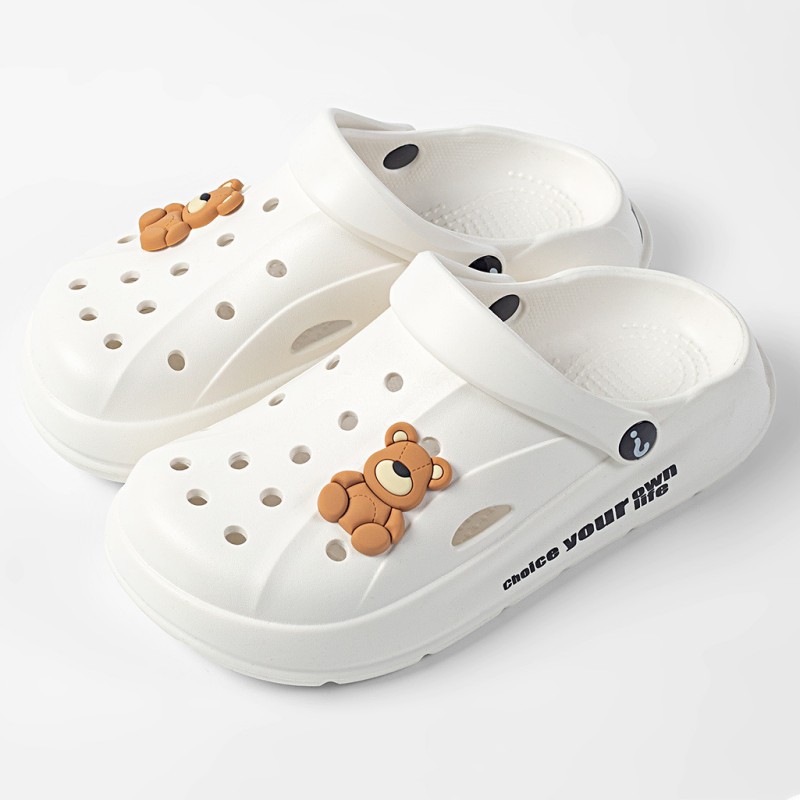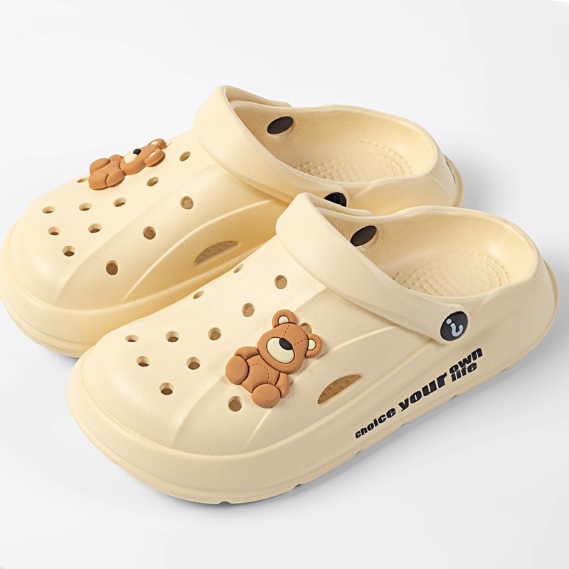 Чистые красные однотонные сандалии и тапочки Баотоу с мультяшным медведем, уличная одежда, милая Повседневная дышащая обувь с мягким дном и отверстиями для родителей и детей оптом
