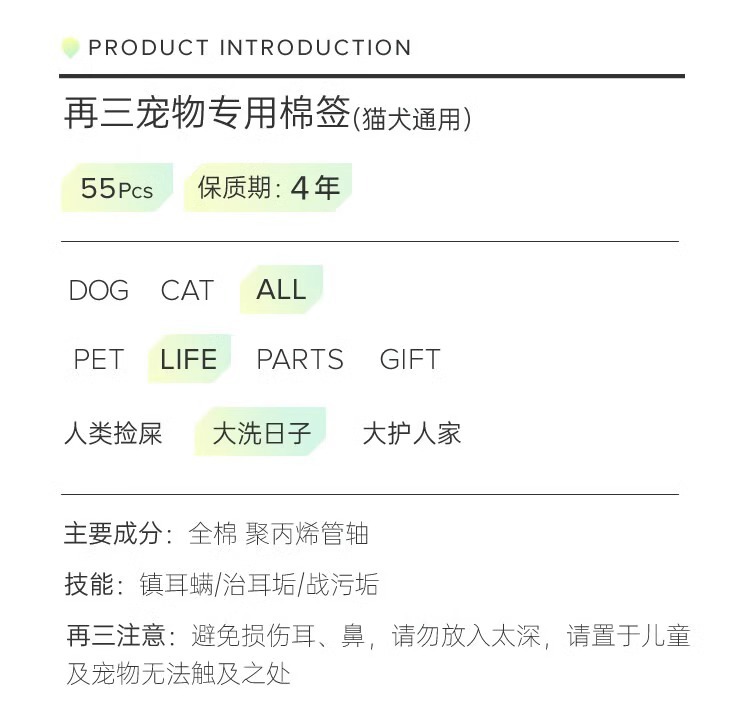 Снова и снова домашнее животное специальный ватный тампон двуглавый ватный тампон кошка собака с ватным тампоном ушной клещ Чистка ушей хлопок 55