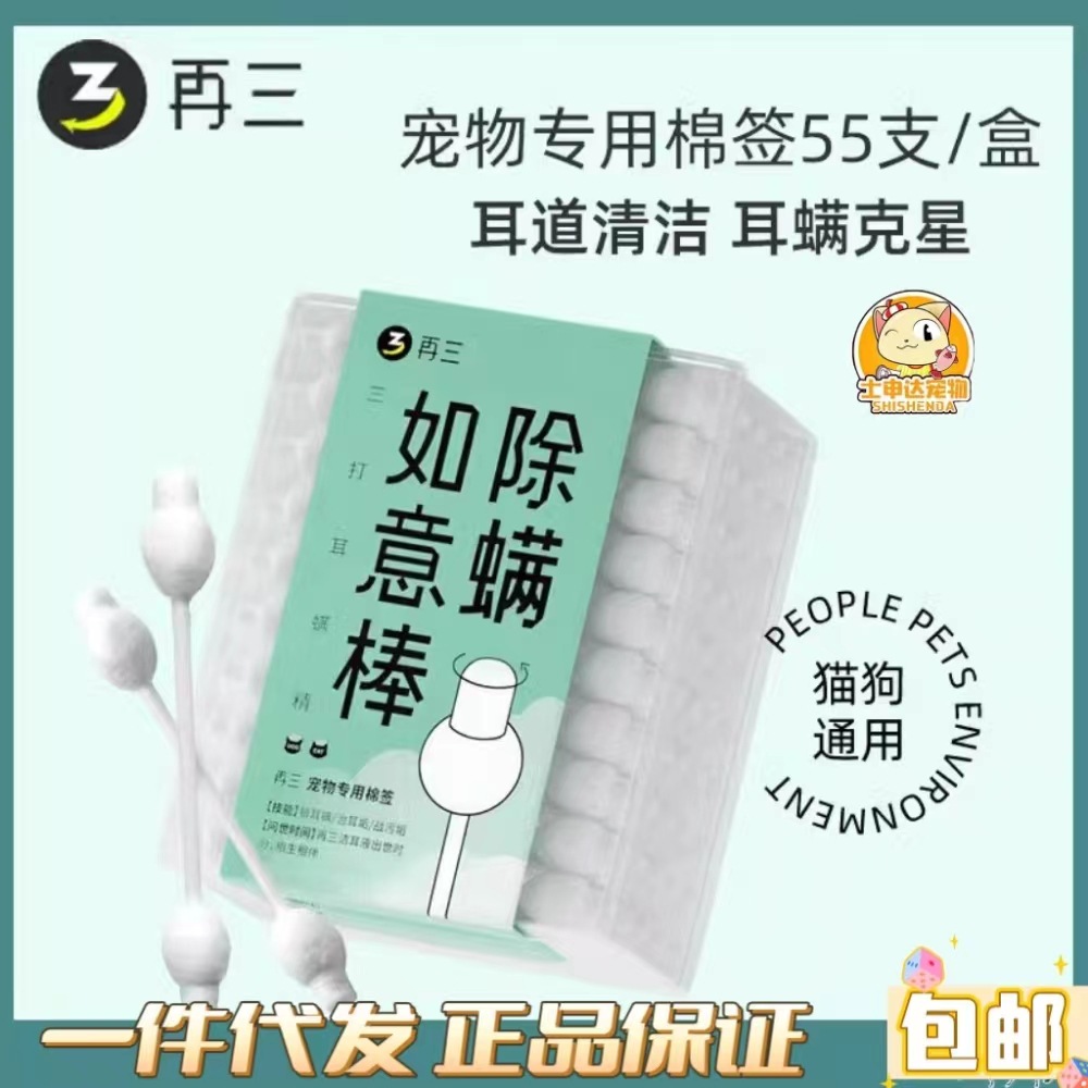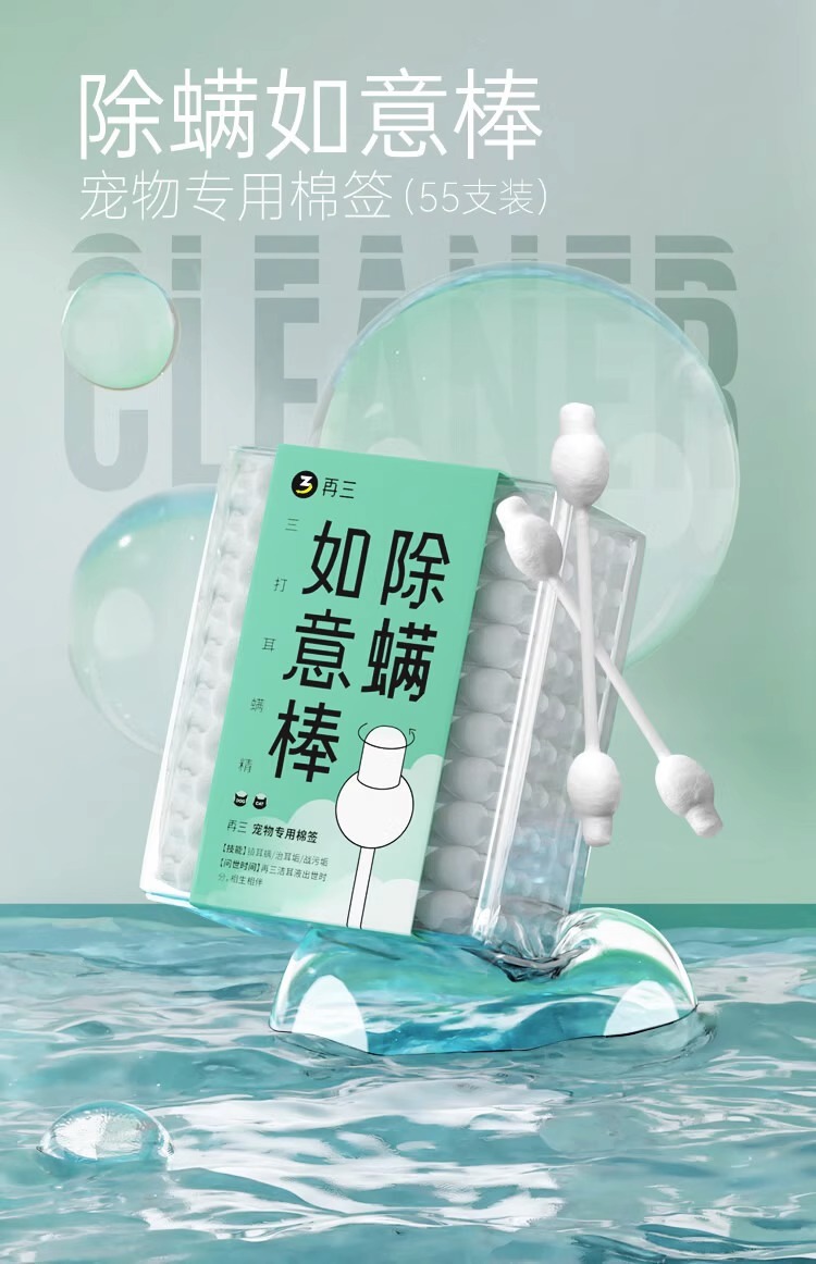 Ватный тампон для чистки ушей от клещей Third Pet 55 Pack; Ватный тампон для удаления клещей домашних животных * 3