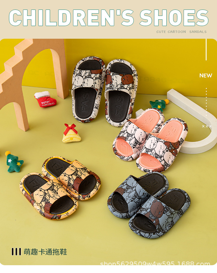 Детские тапочки с мультяшным принтом в виде медведя Женский родитель-ребенок, большие дети, верхняя одежда для средних детей, домашние Нескользящие сандалии для родителей и детей