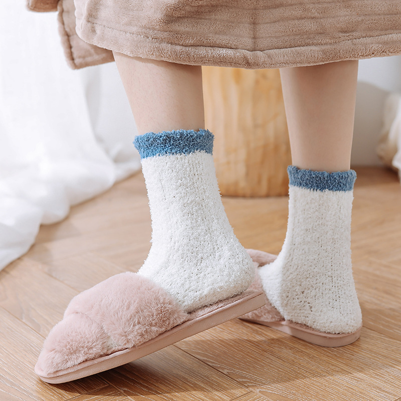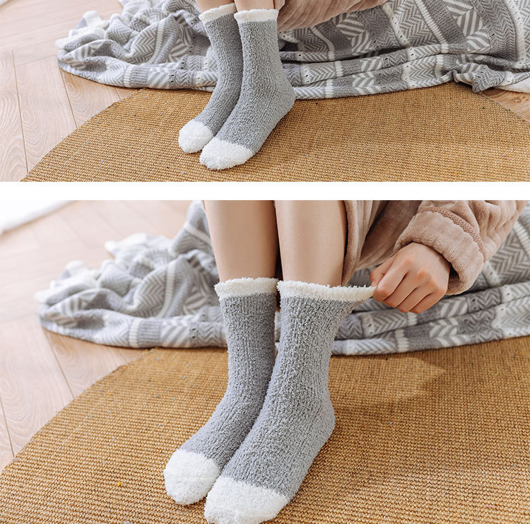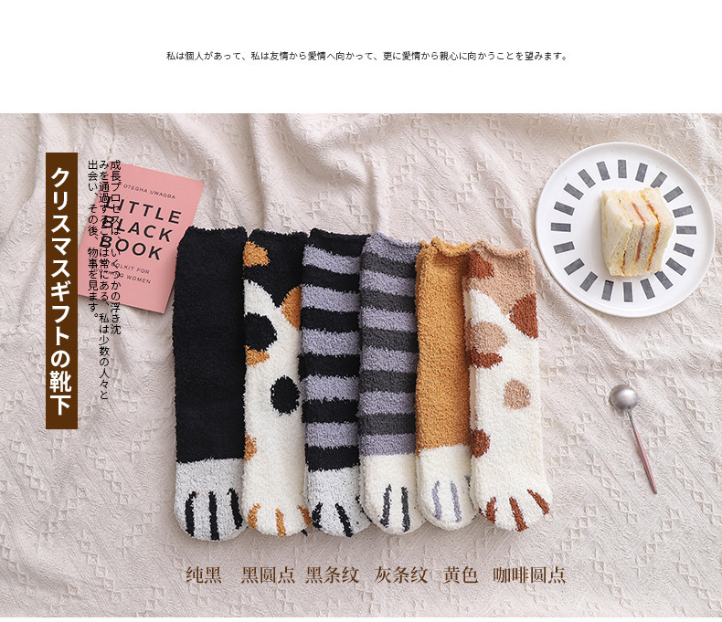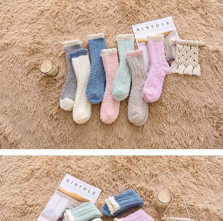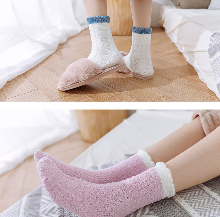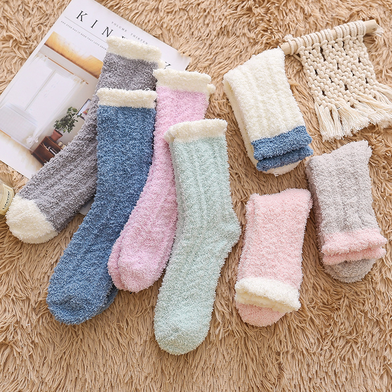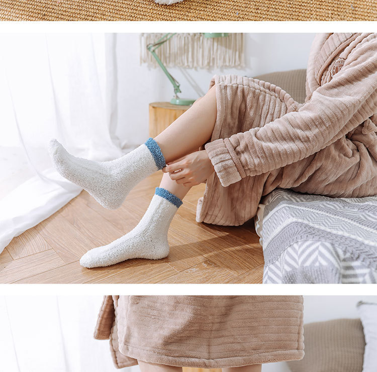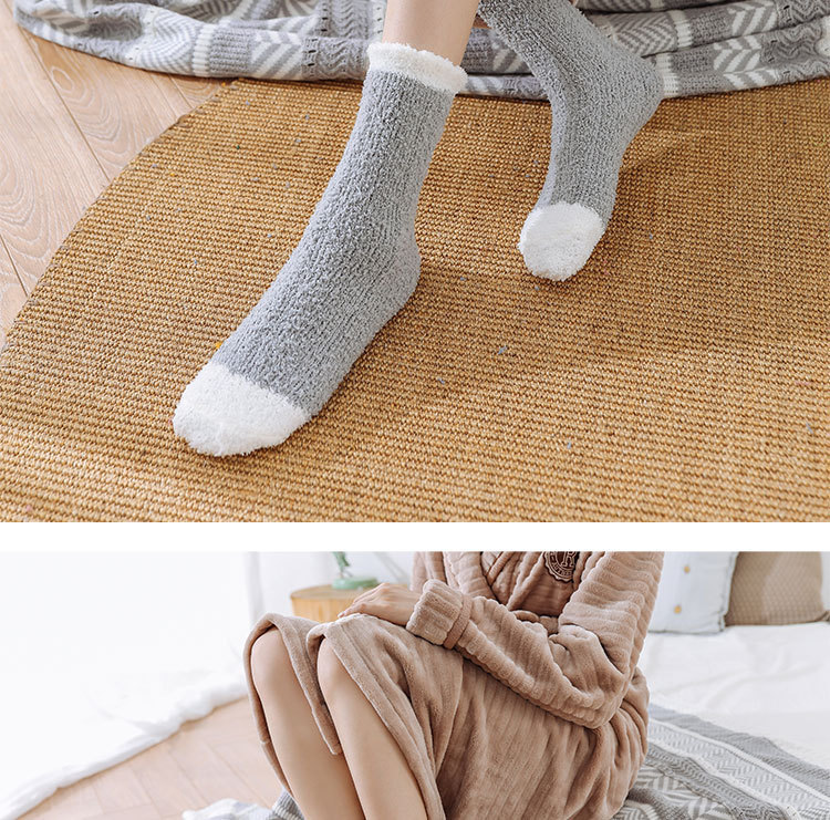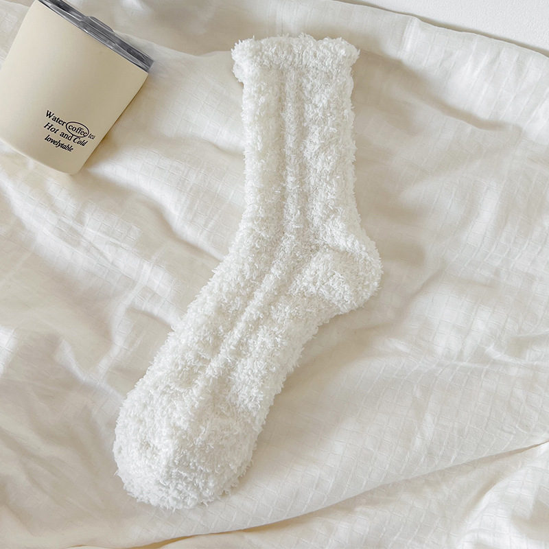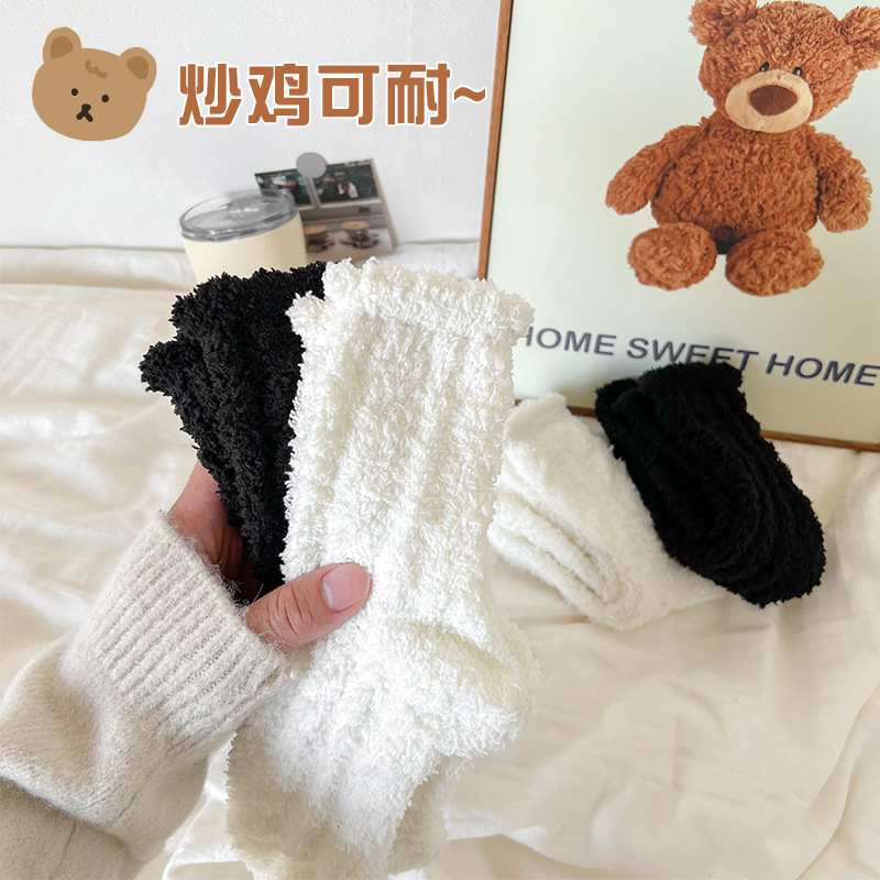 Коралловые бархатные носки, женские утолщенные полотенца для сна, длинные носки в виде Луны, осенне-зимние домашние теплые носки средней длины на флисовой подкладке
