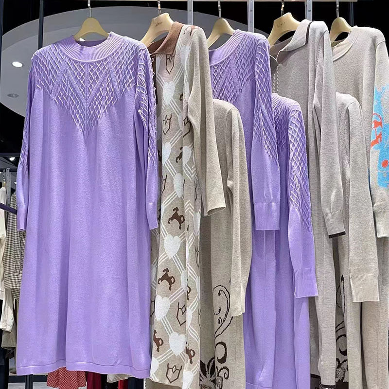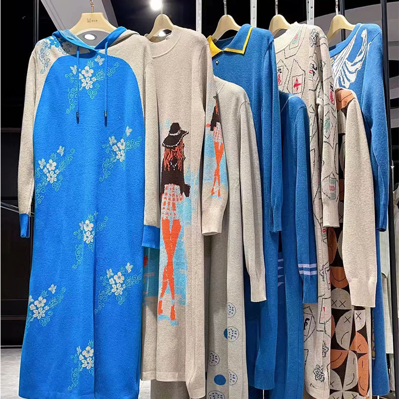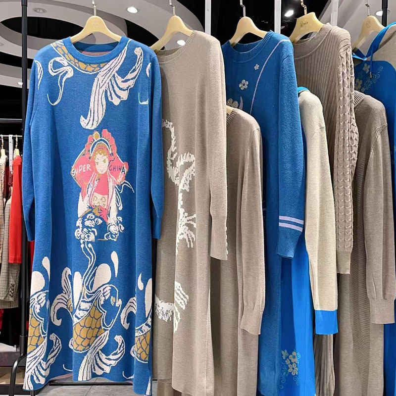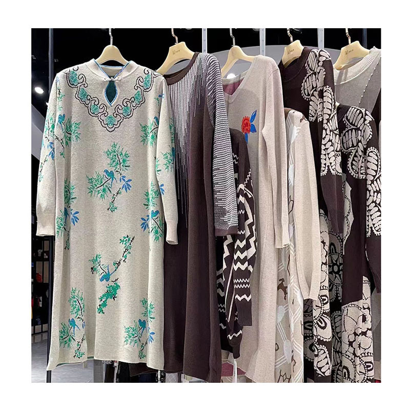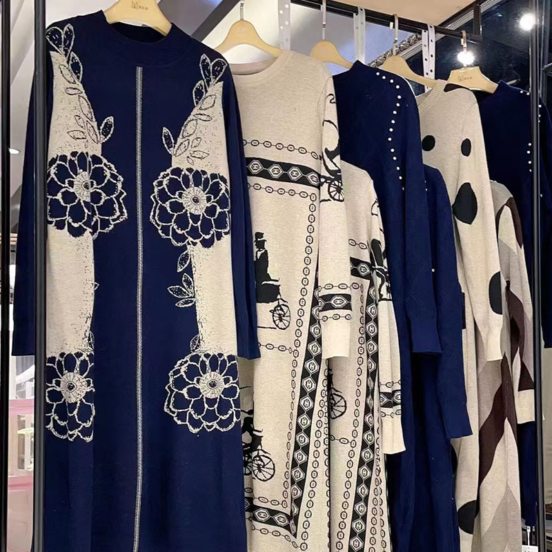 Трикотажное платье с принтом в длинную модель 23 зимняя мода свободная шерстяная юбка минус возраст среднего возраста женская одежда в прямом эфире