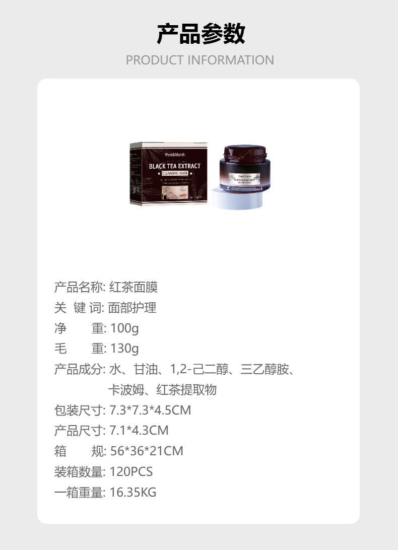 West & Month Маска с черным чаем Очищающая маска для нанесения пор Нежная маска для осветления пор
