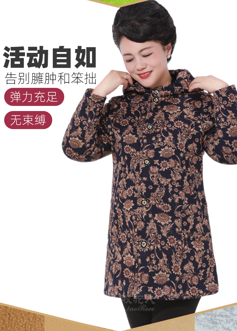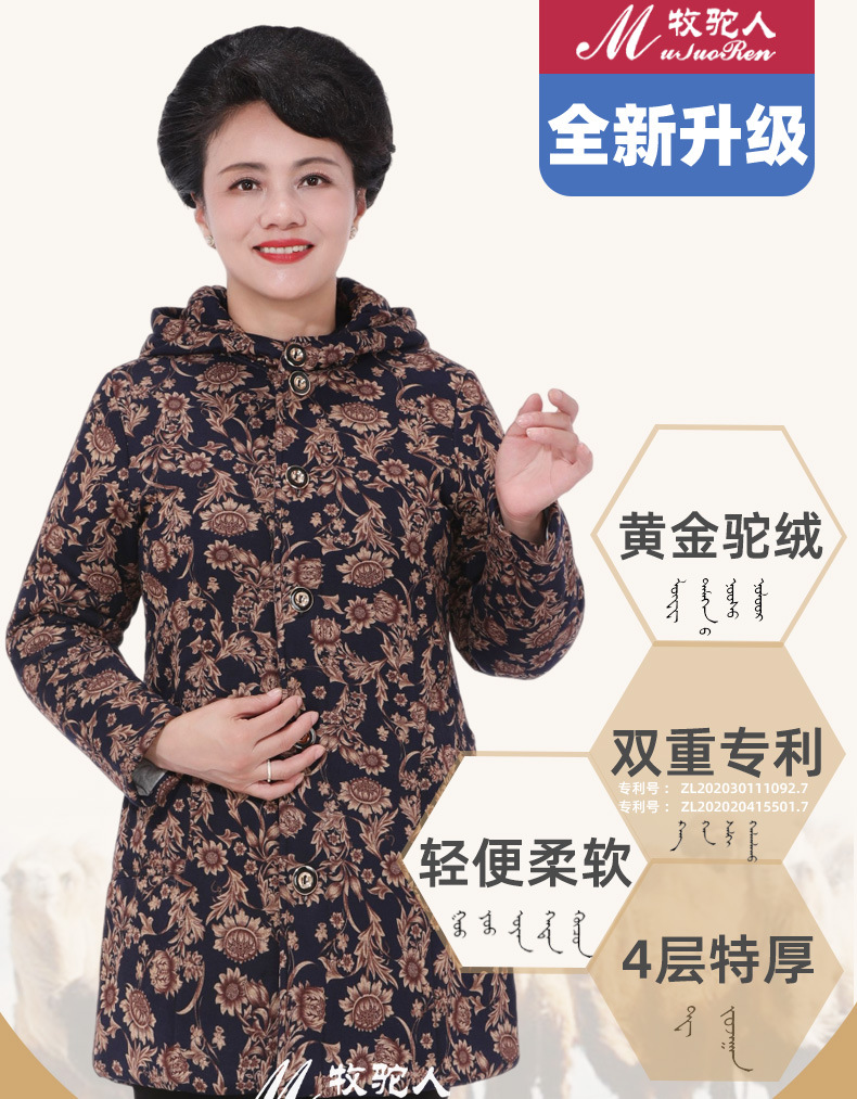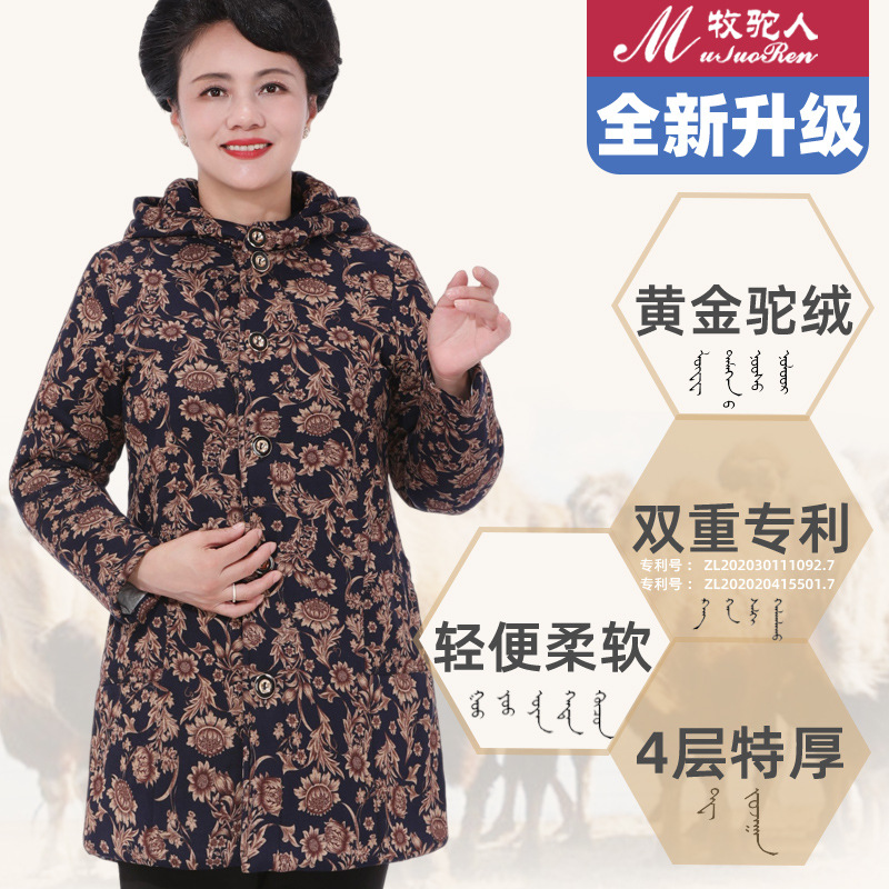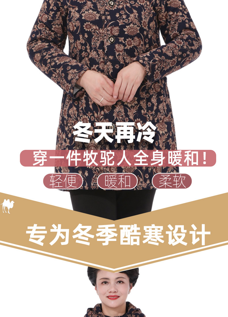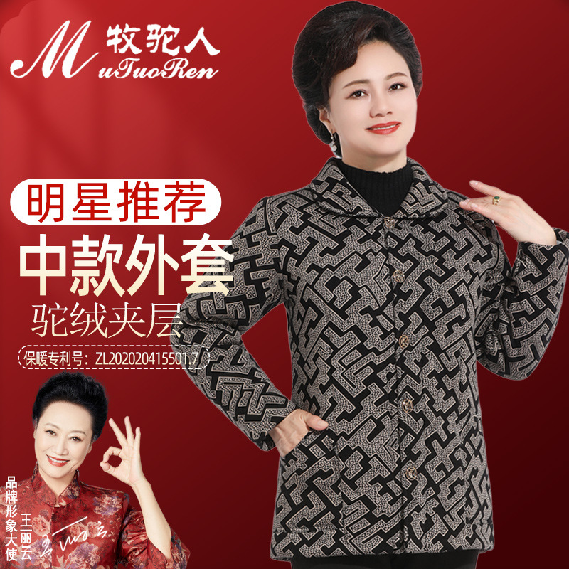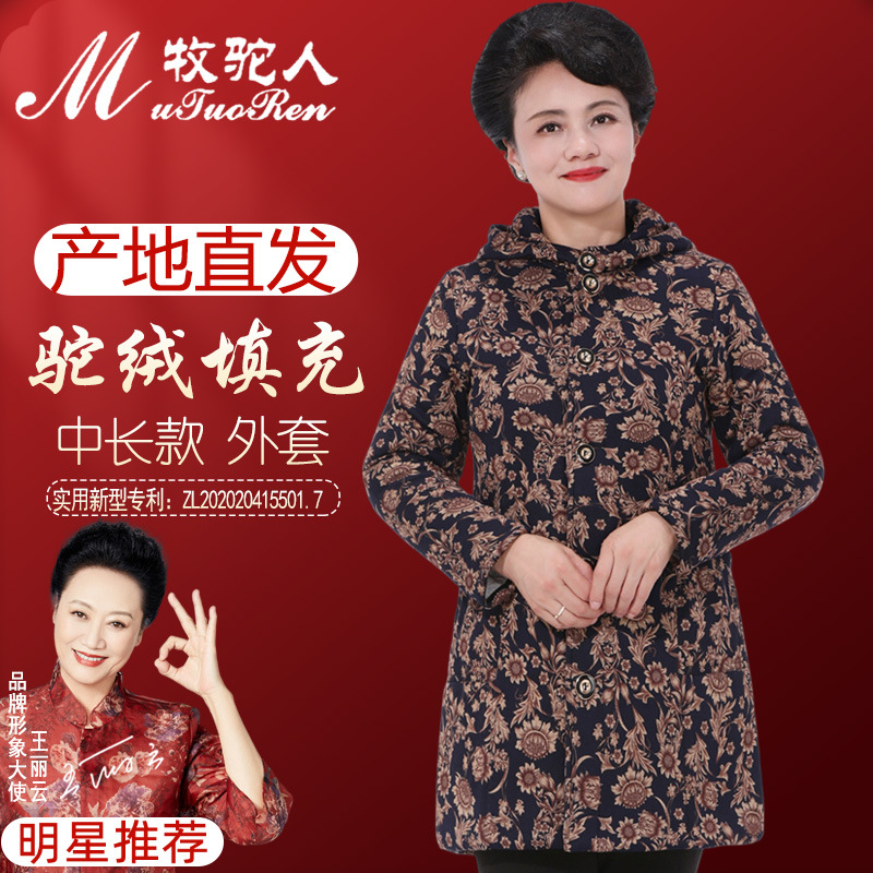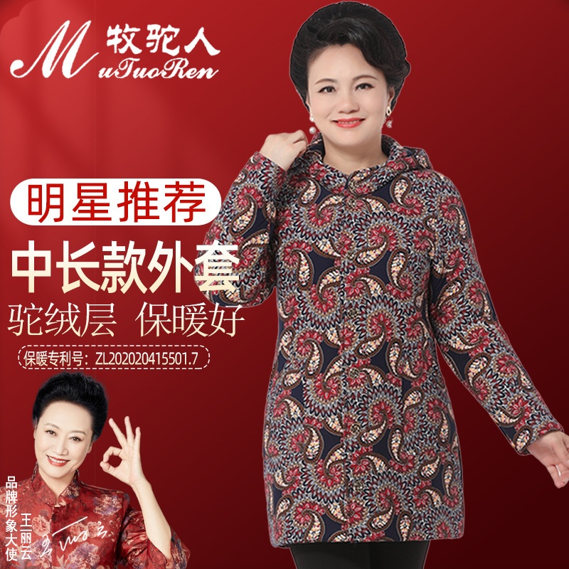 Осенне-зимнее пальто для мам Утепленная куртка из верблюжьей бархатной ватной ткани для женщин среднего и пожилого возраста. Куртка средней длины с хлопковой подкладкой в западном стиле для женщин среднего и пожилого возраста.