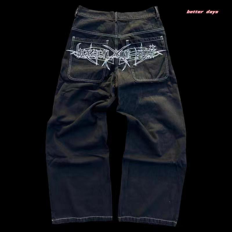2023 трансграничная новая высокая уличная мода джинсы национальной моды модные ретро хип-хоп повседневные брюки крутая пара с принтом