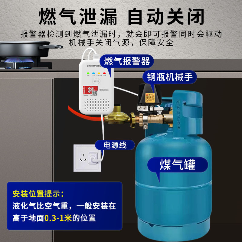 Газовая сигнализация Бытовая Кухня ресторана Баллон со сжиженным газом автоматический клапан отключения сжиженного газа сигнализация утечки сжиженного газа