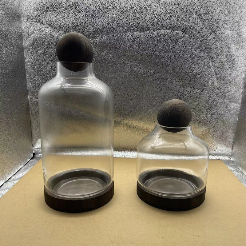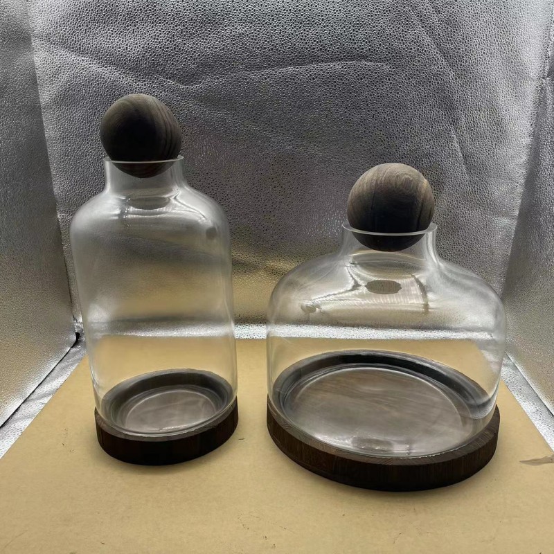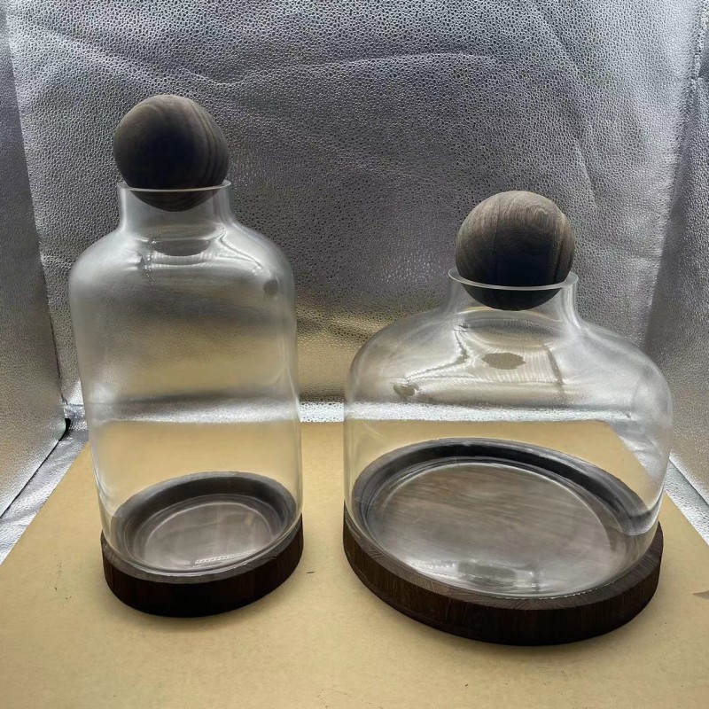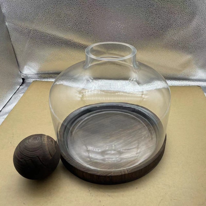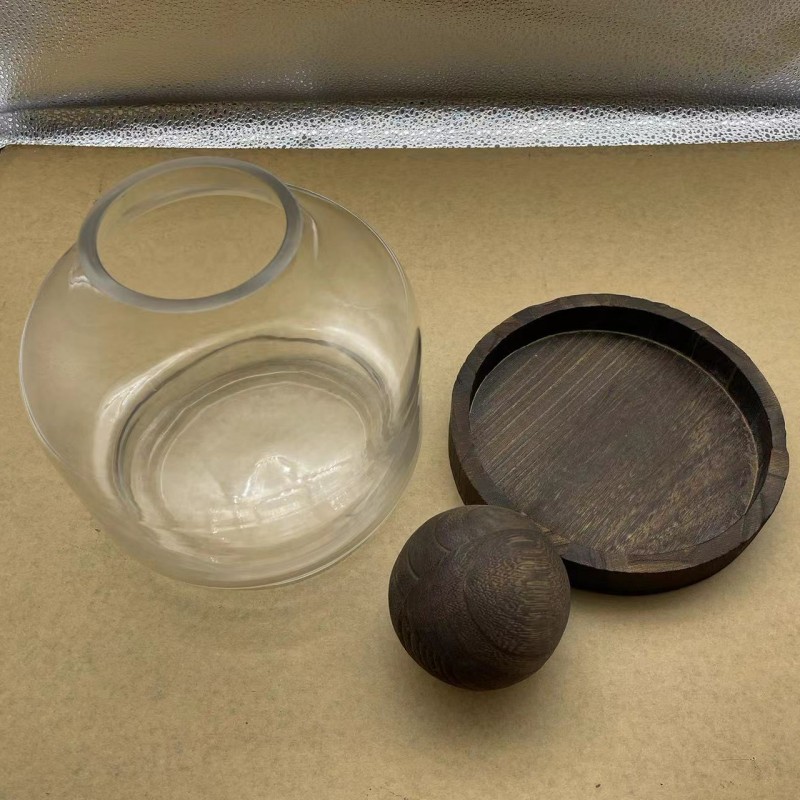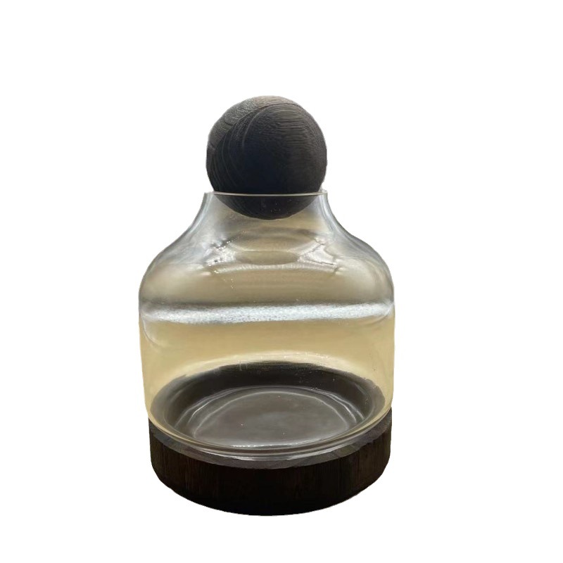 Креативный круглый стеклянный соломенный резервуар маленький аквариум в японском стиле маленькая экологическая бутылка Douyu бутылка настольная микропейзаж деревянная основа