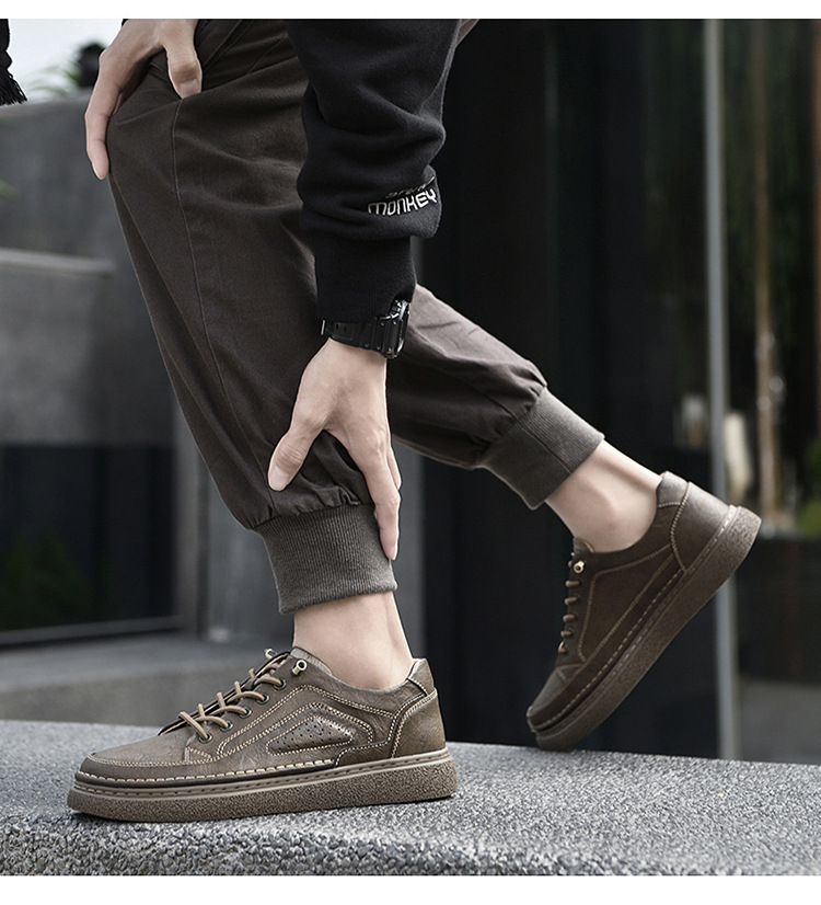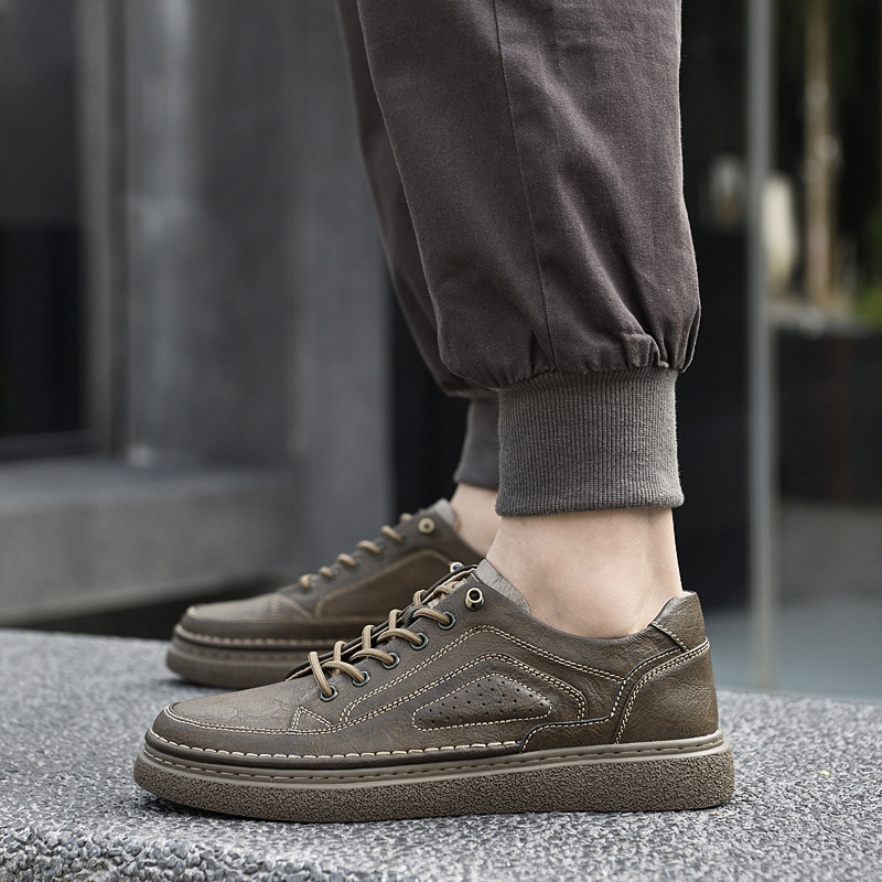 2022 Мужская обувь для досок ручной работы на плоской воловьей кожи Модная Спортивная повседневная обувь весна-осень ретро Молодежная модная обувь на шнуровке