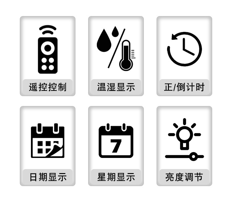 Украшение; Термометр; Вечный календарь; Сигнализация; Календарь; Обратный отсчет; 24 часовая индикация; Измерение влажности; Недельный дисплей