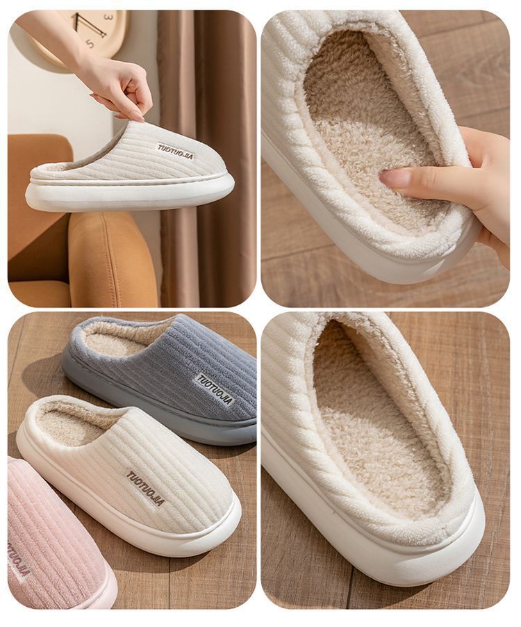 2024 новые тапочки зимние хлопчатобумажные тапочки женские толстые подошвы утолщенные бархатные теплые дома милые носки мужские