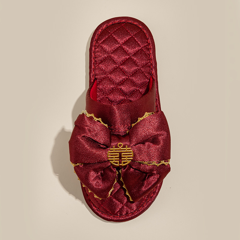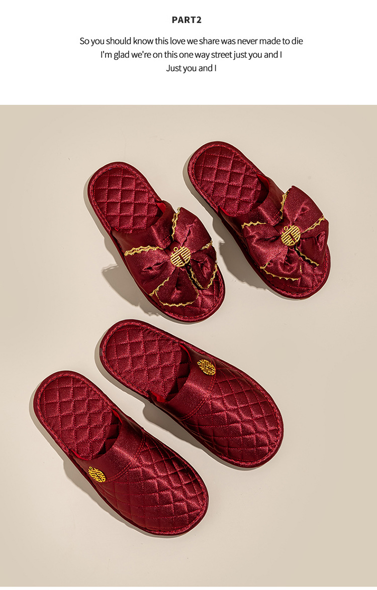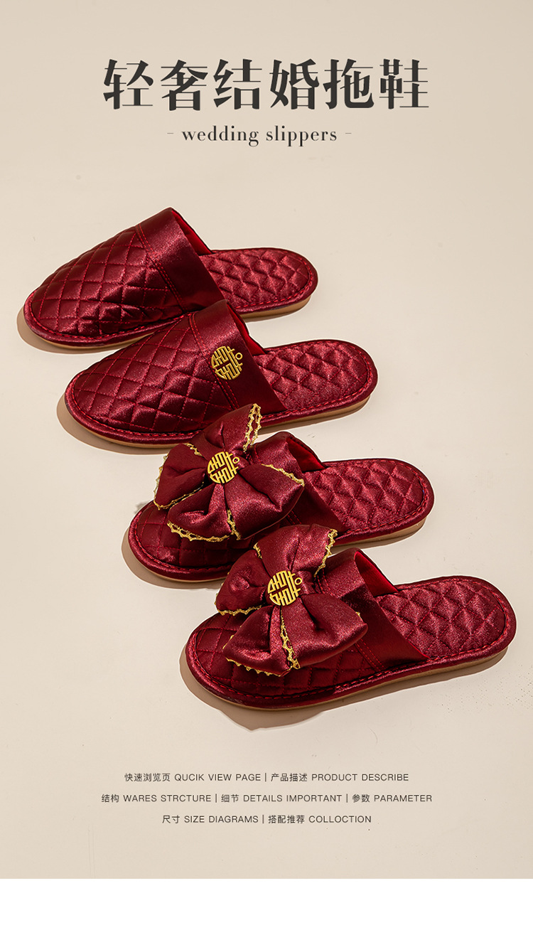 Атласные высококачественные красные свадебные хлопковые тапочки для жениха и невесты, домашние летние весенне-осенние праздничные свадебные тапочки для пар