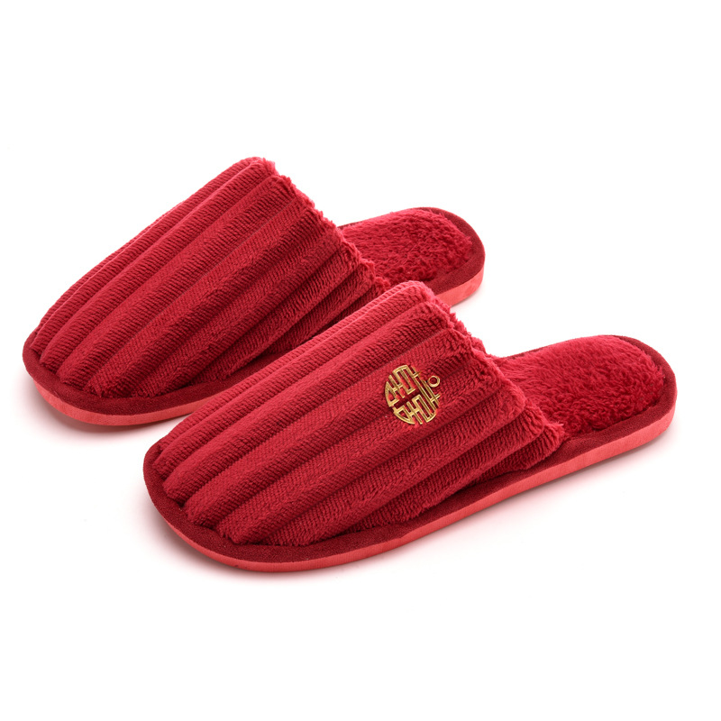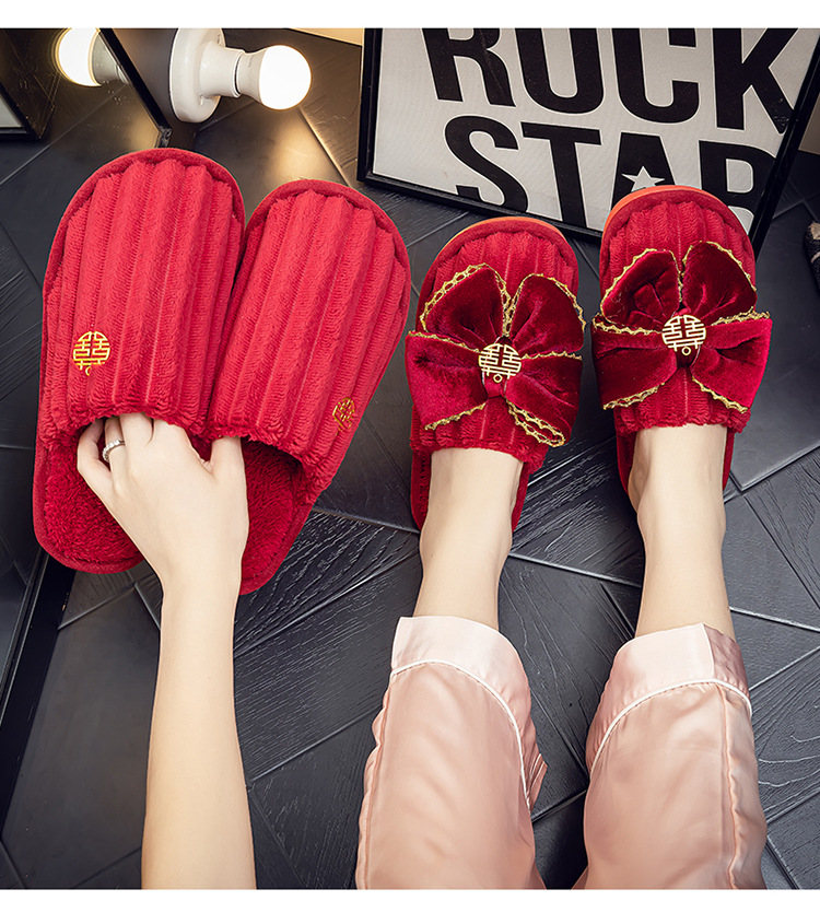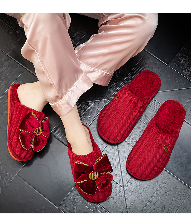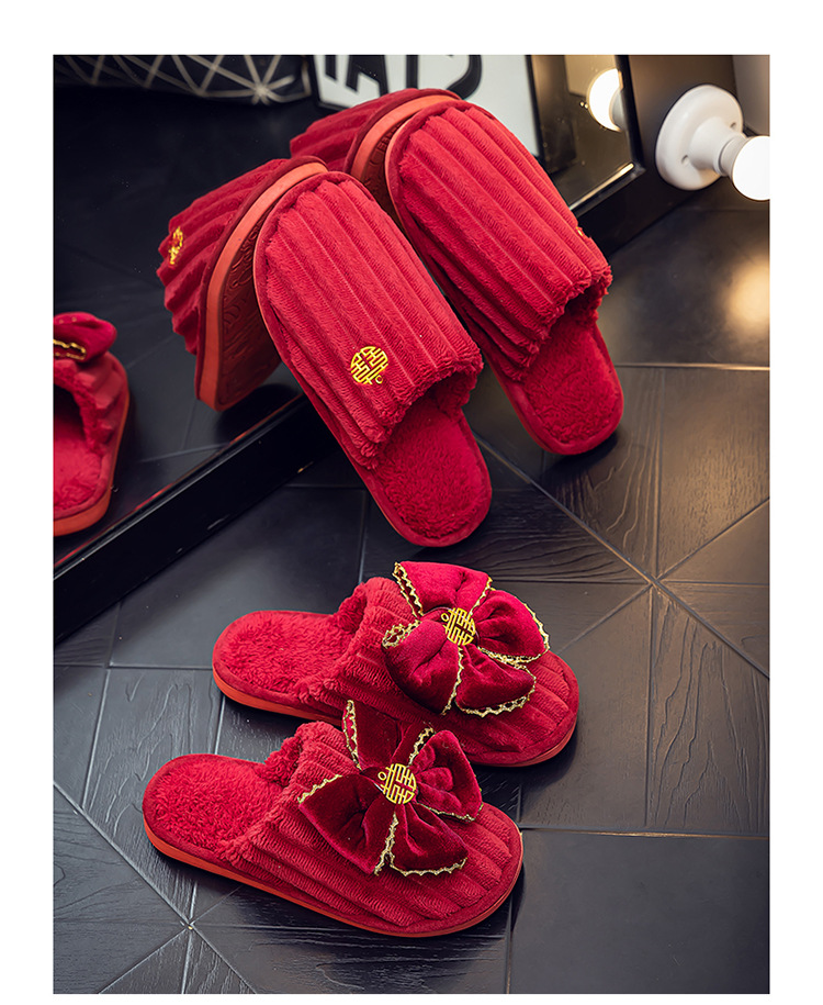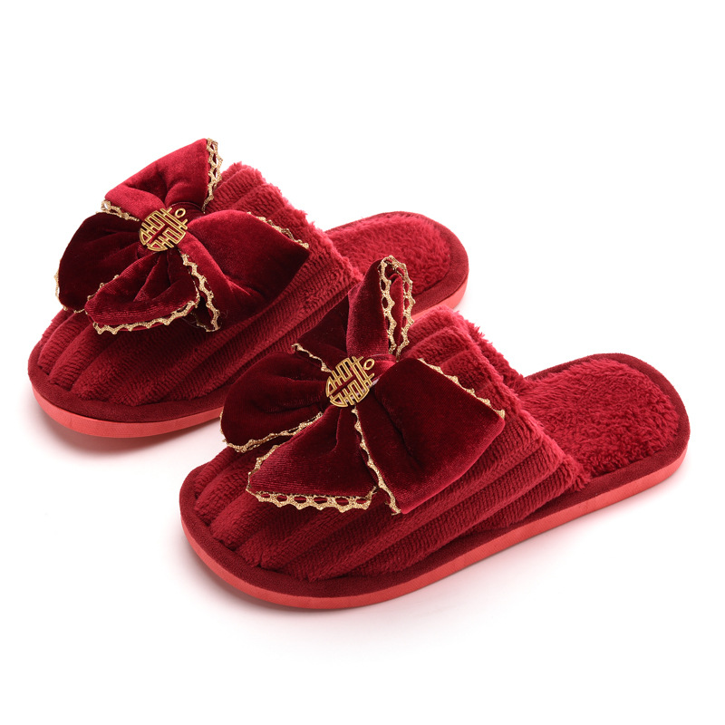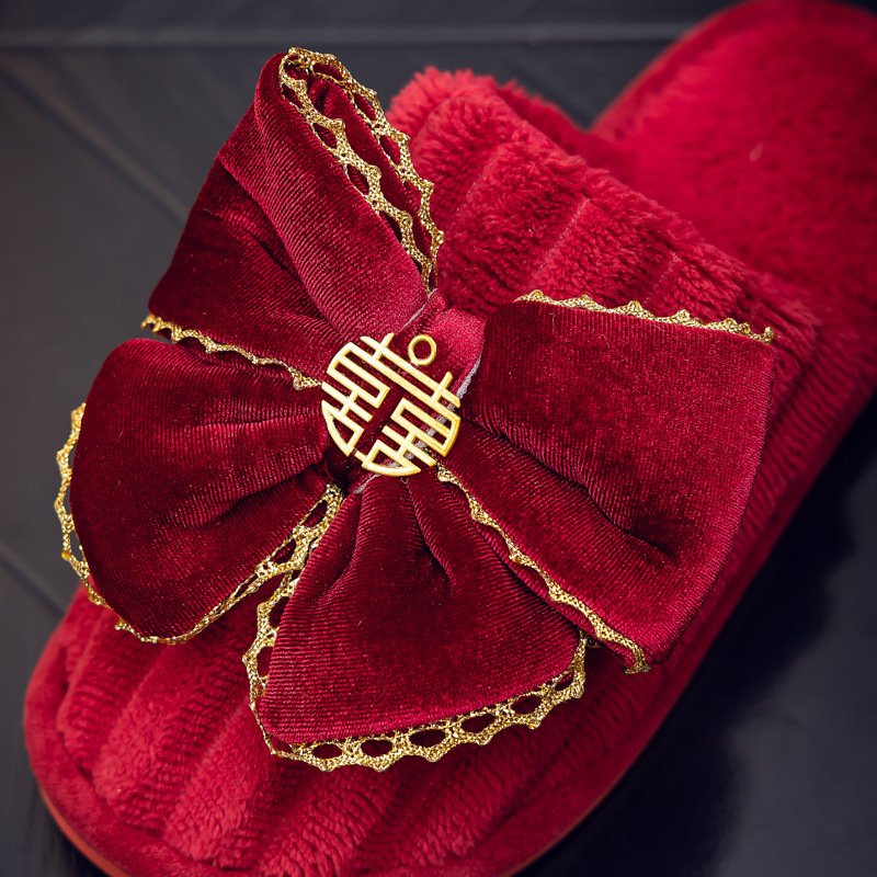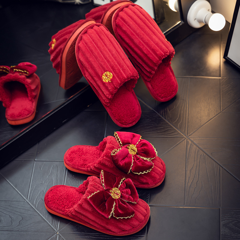 Свадебные тапочки Праздничная красная пара Свадебная пара Легкие Роскошные утренние платья невесты Хлопковые тапочки Осень и зима