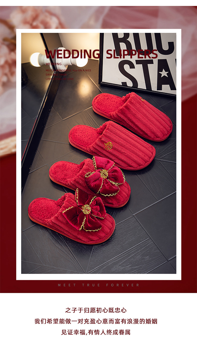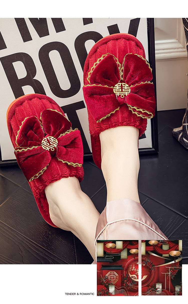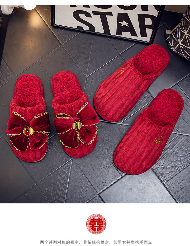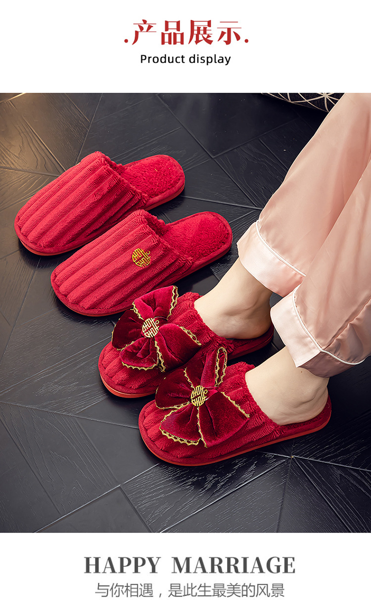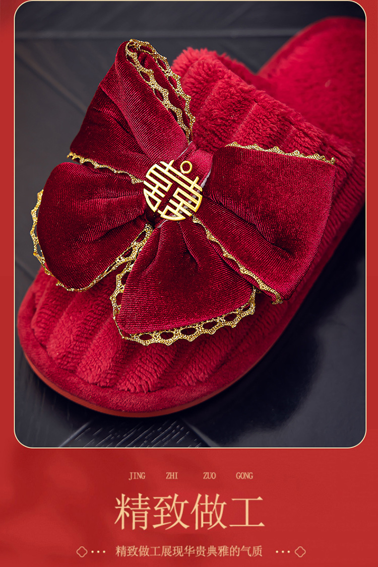 Свадебные тапочки Праздничная красная пара Свадебная пара Легкие Роскошные утренние платья невесты Хлопковые тапочки Осень и зима