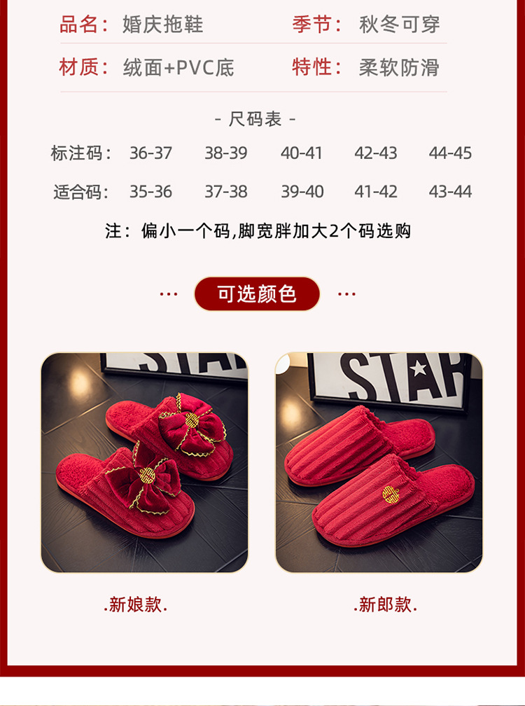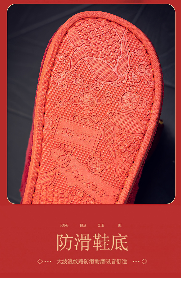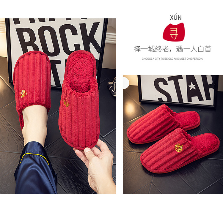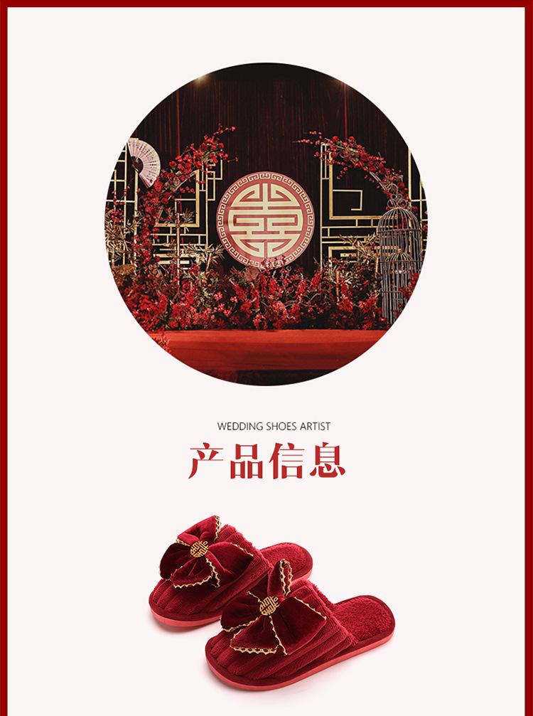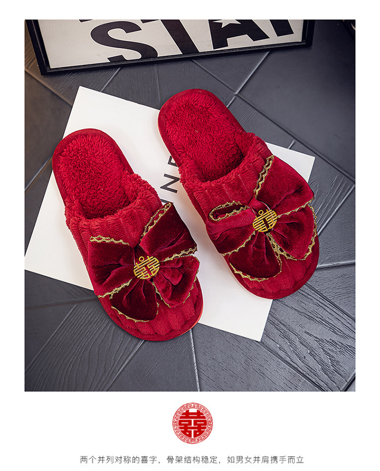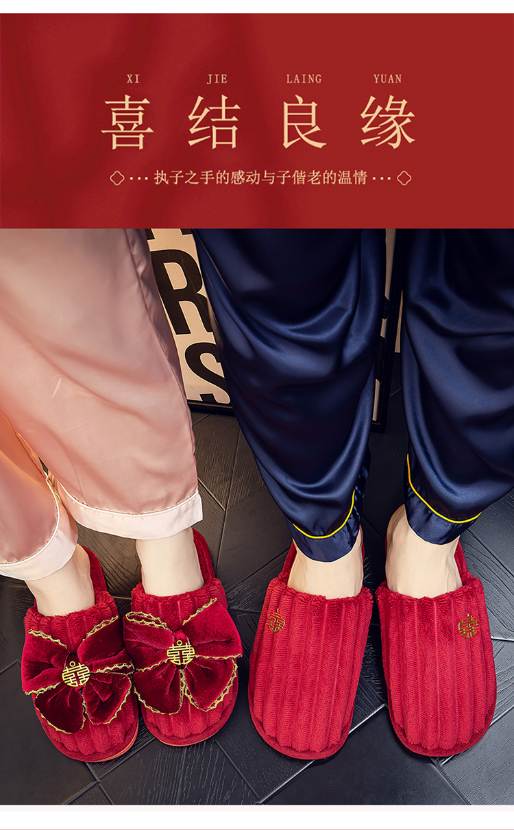Свадебные тапочки Праздничная красная пара Свадебная пара Легкие Роскошные утренние платья невесты Хлопковые тапочки Осень и зима