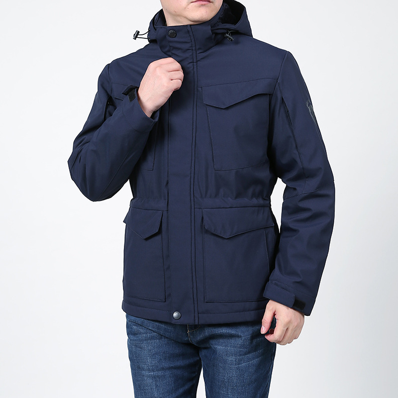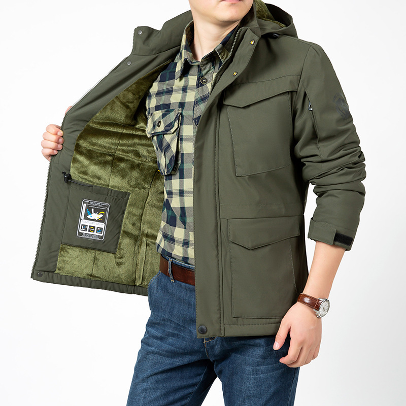 2022 зимнее Новое Штурмовое пальто, мужское повседневное пальто больших размеров, топ с капюшоном и несколькими карманами, мужская куртка на флисовой подкладке с хлопковой подкладкой 2088