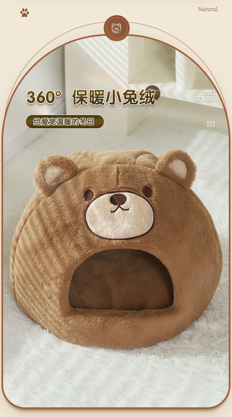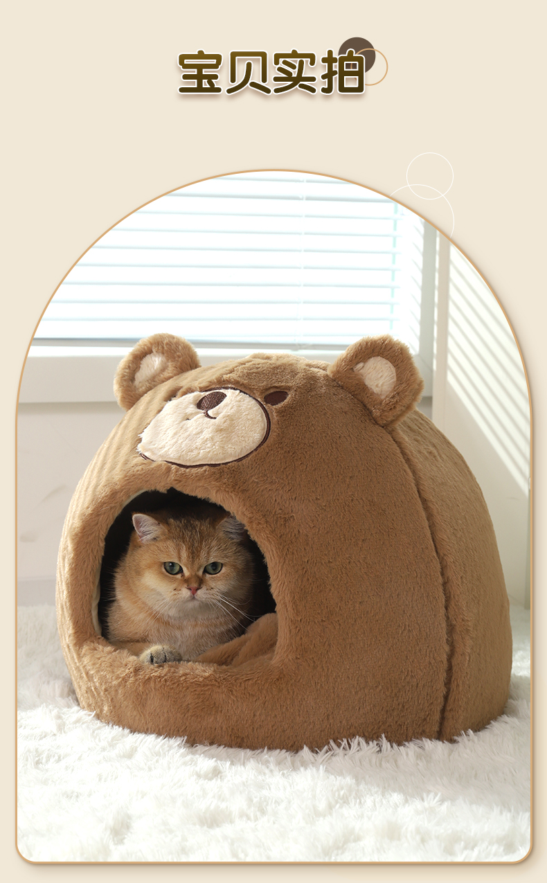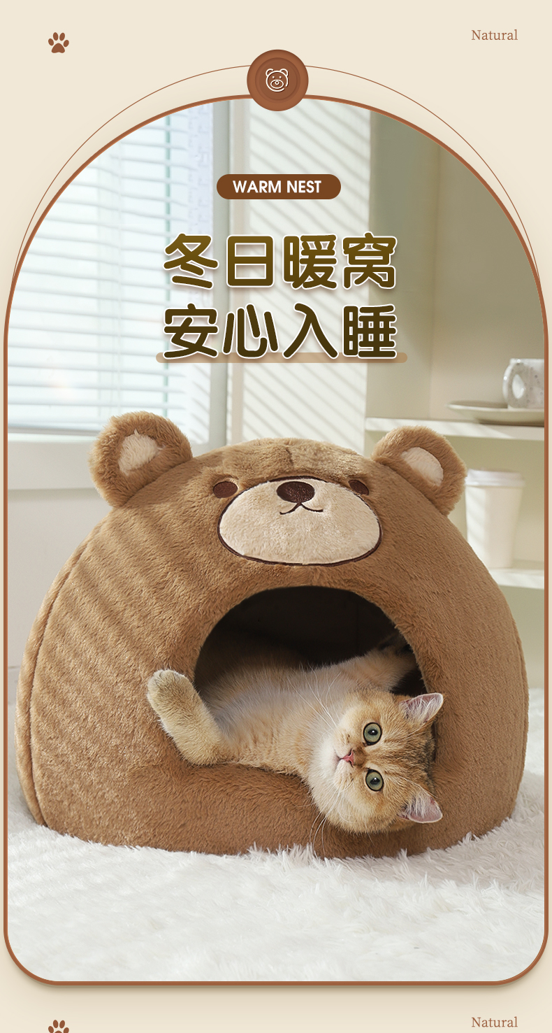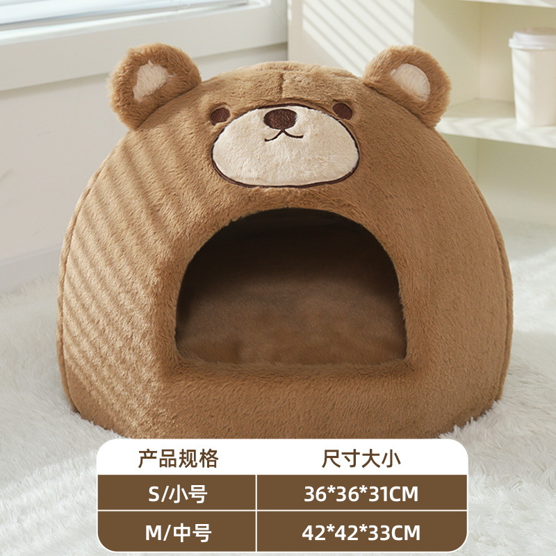 【品名】:咖色小熊蒙古包窝(S/M)/好暖椰-猫咪睡袋(S/M)